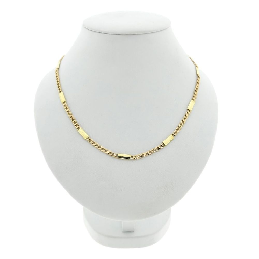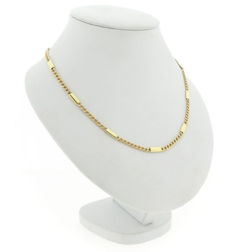 Gold chain made with gourmet links and closed bars. This classic link is an oval link with a slight twist. The chain is perfect for a medium to large pendant or can be worn without a pendant. The chain is crafted from 14-karat yellow gold (585/1000).