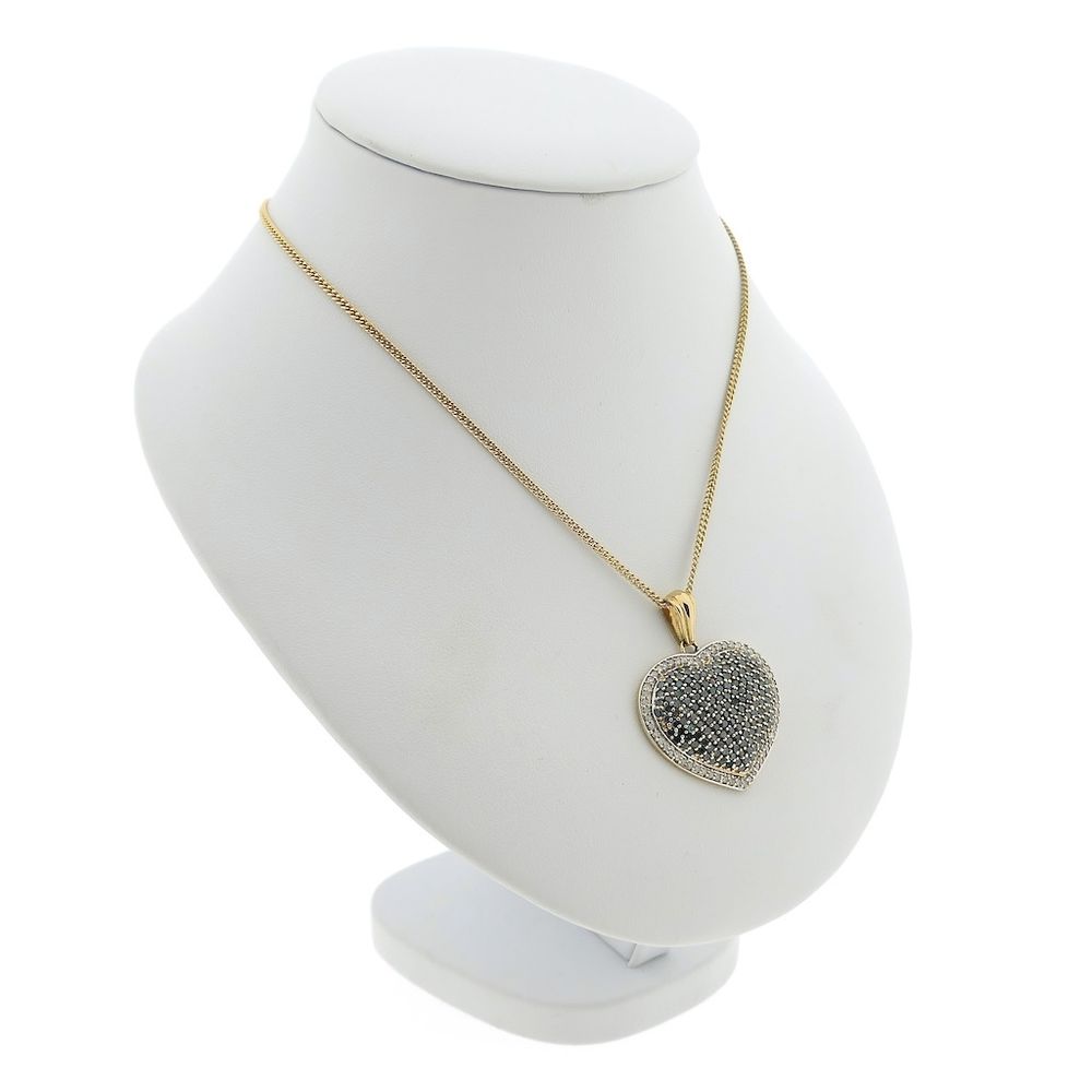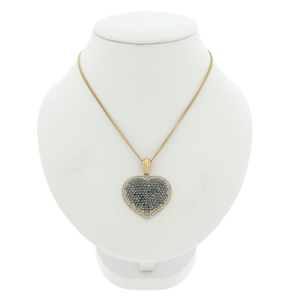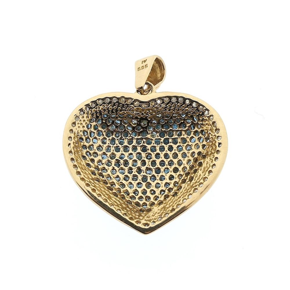 Gold heart pendant with blue moissanite and diamonds; approx. 2.31 ct.
