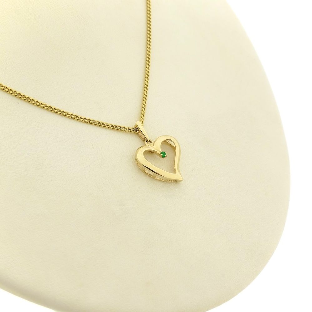Gold heart pendant with emerald