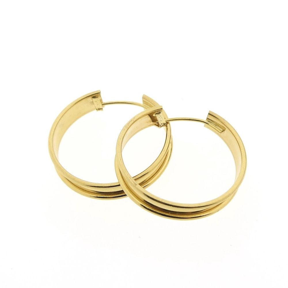 Gold hoop earrings with a diameter of 28 mm. The earrings have a smooth finish, and the timeless design adds a modern, elegant touch to your look. This beautiful set is crafted from 18-karat yellow gold (750/1000).