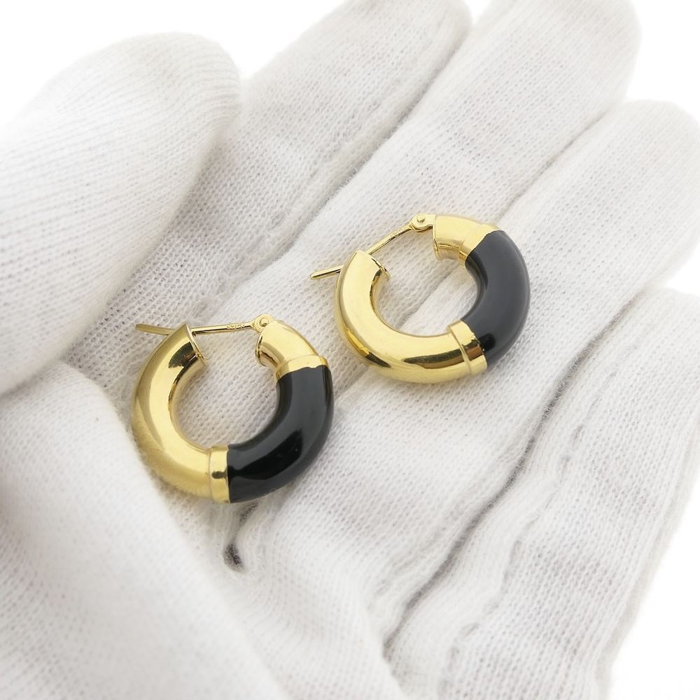 Gold hoop earrings with black enamel | Ø 20.5 mm