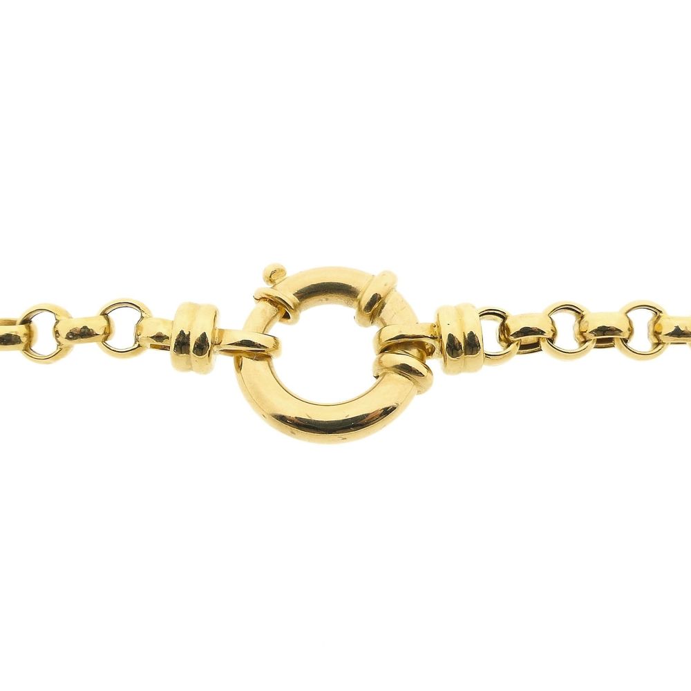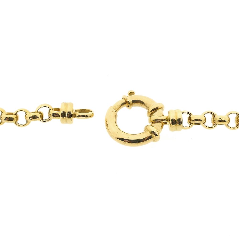 Gold jasseron link chain. The jasseron is a series of round links with a classic look. The chain closes with a large spring ring and is crafted from 18-karat yellow gold (750/1000).