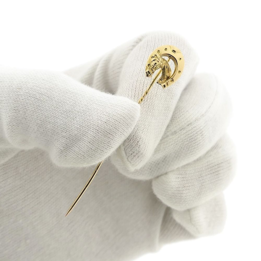 Gold lapel pin, tie pin | Horse and horseshoe