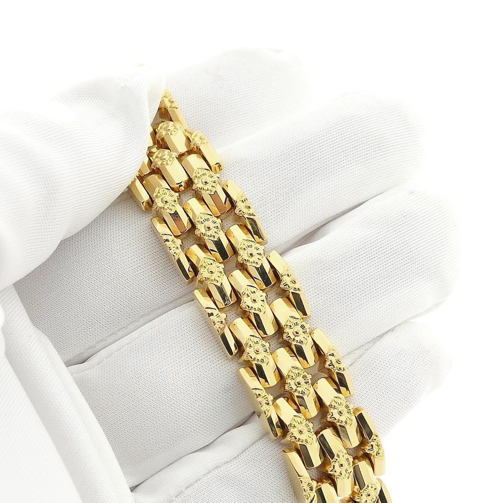 Gold link bracelet with pattern
