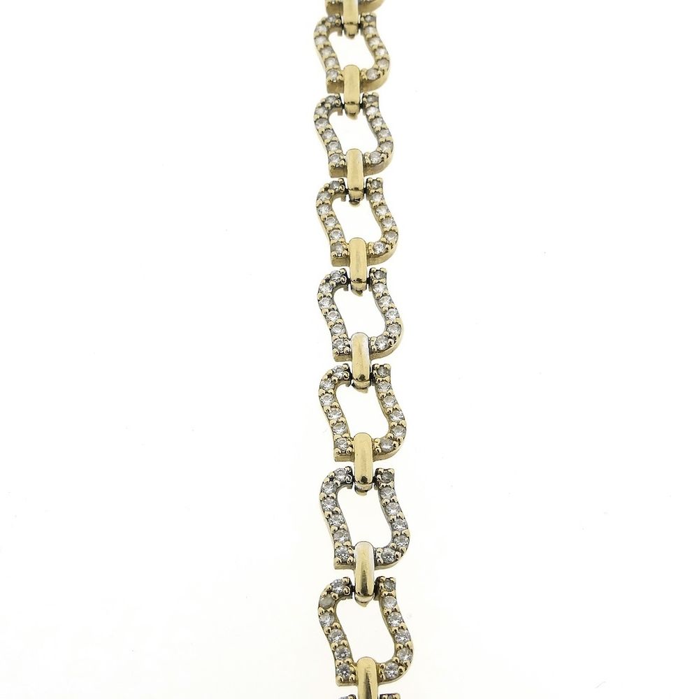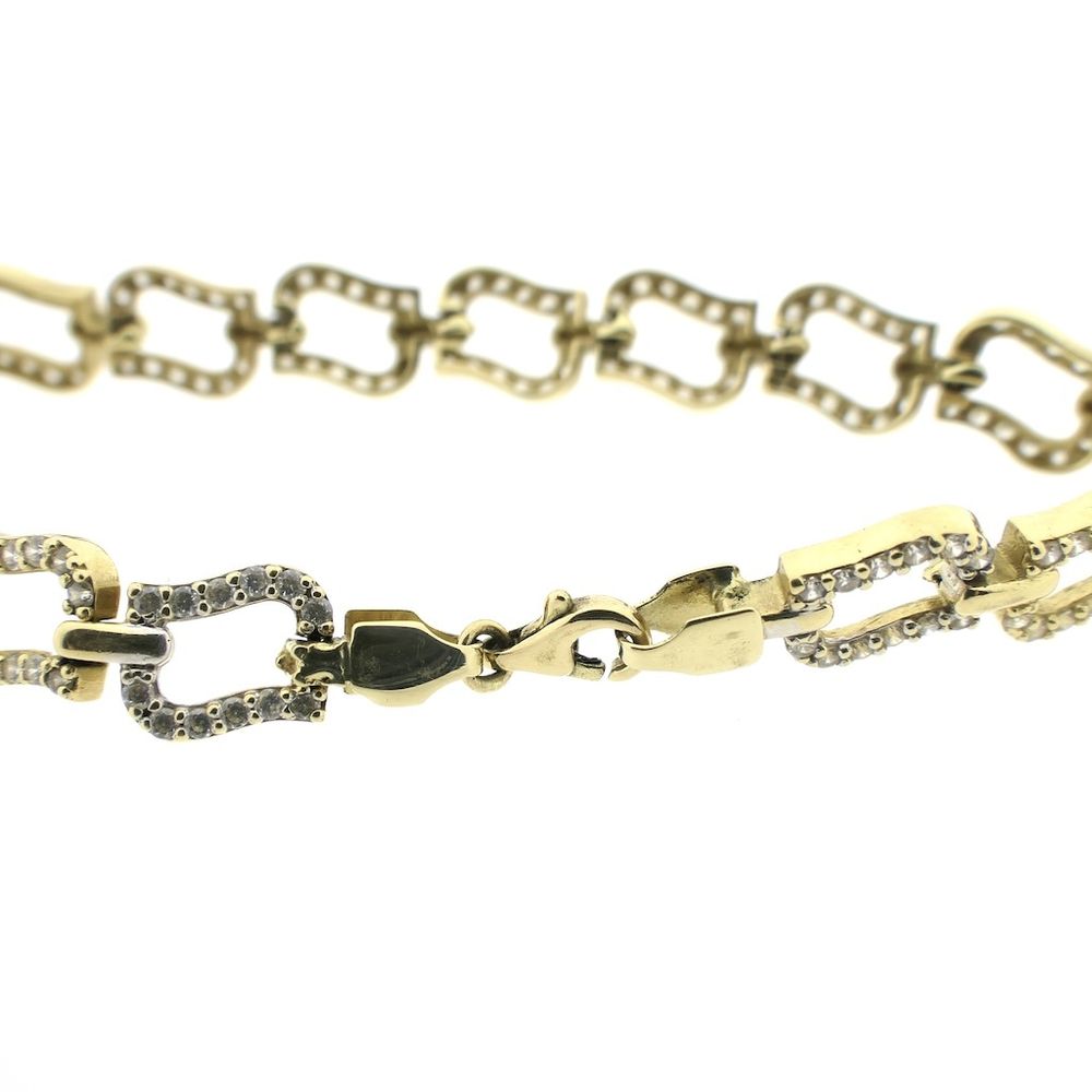 Gold link bracelet set with zirconia stones. This unique and modern bracelet is crafted from 14-karat yellow gold (585/1000).