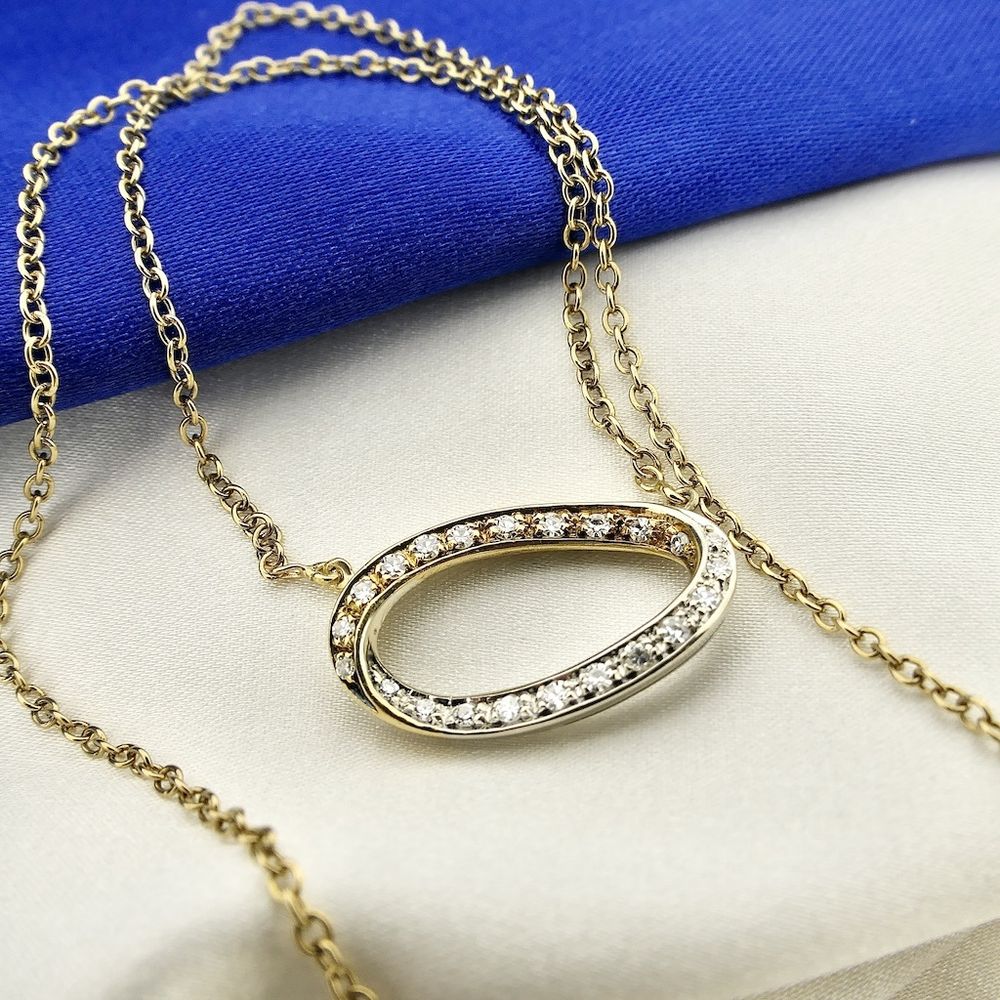 Gold link chain with bicolor fixed diamond pendant; 0.34 ct.