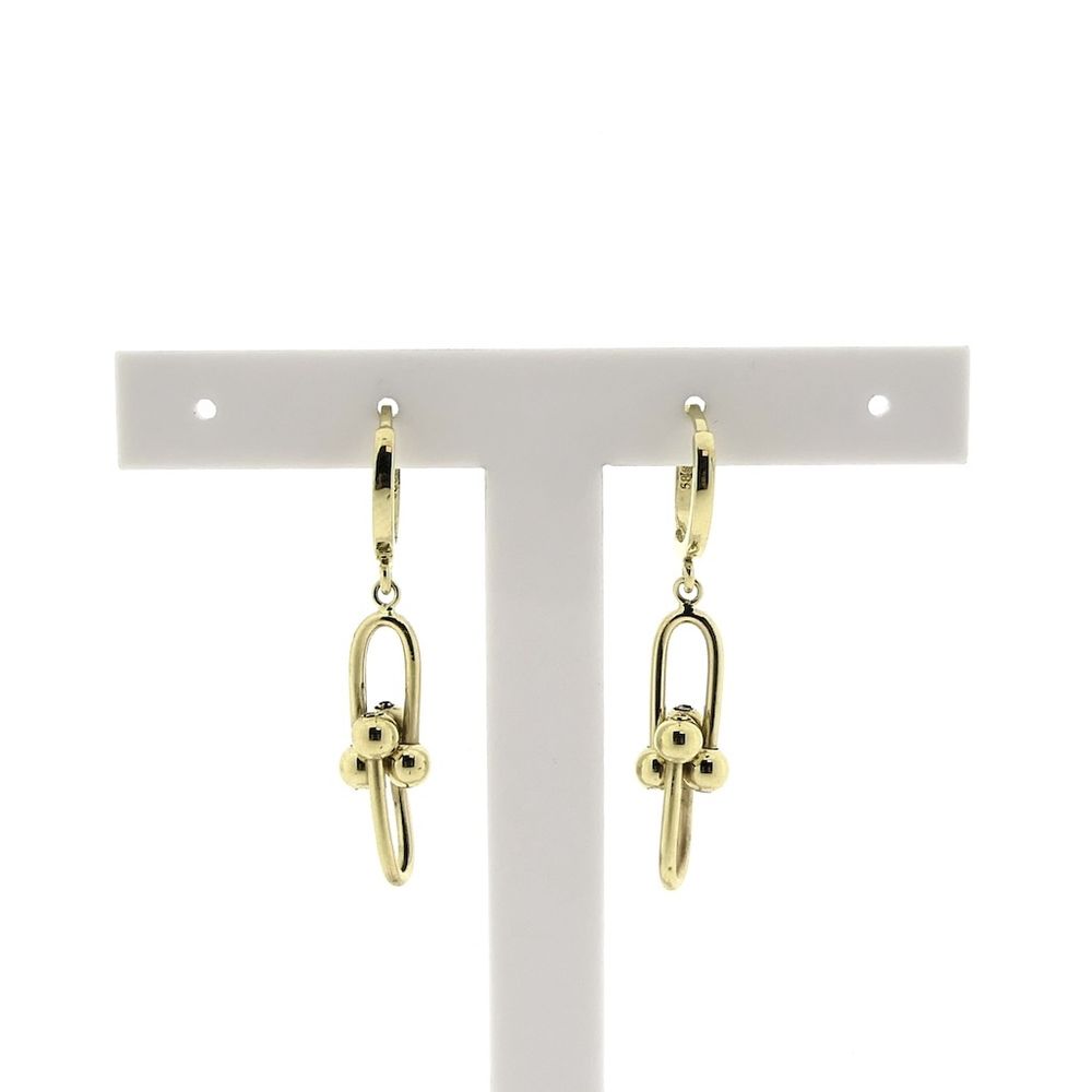 Gold paperclip link earrings. A stylish set crafted from 14-karat yellow gold (585/1000).