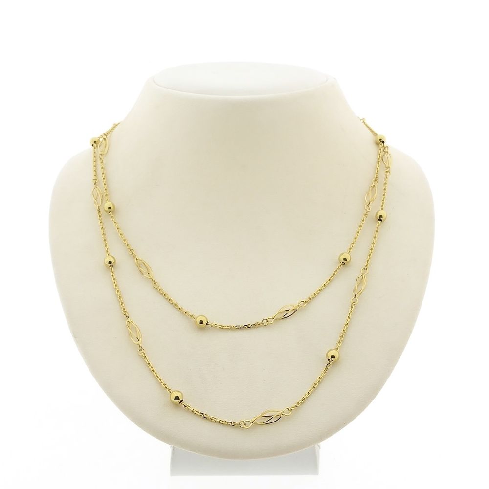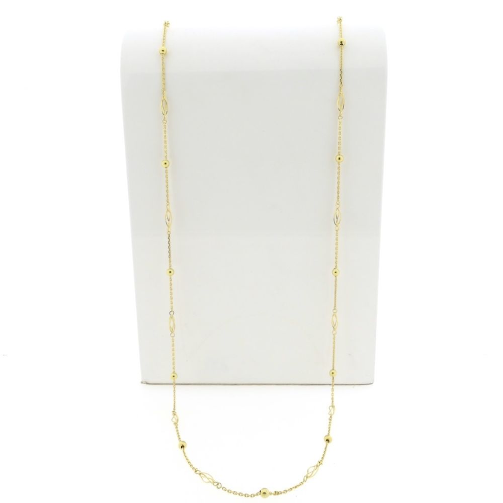 Gold long necklace with decorative details | 90 cm
