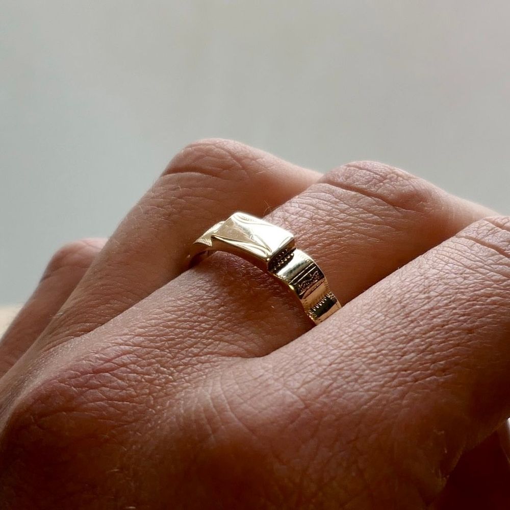 Gold ring with subtle engravings. This beautiful men's ring is made from 14 karat yellow gold (585/1000).