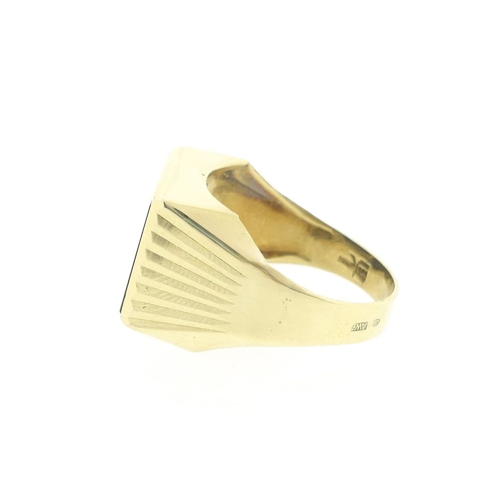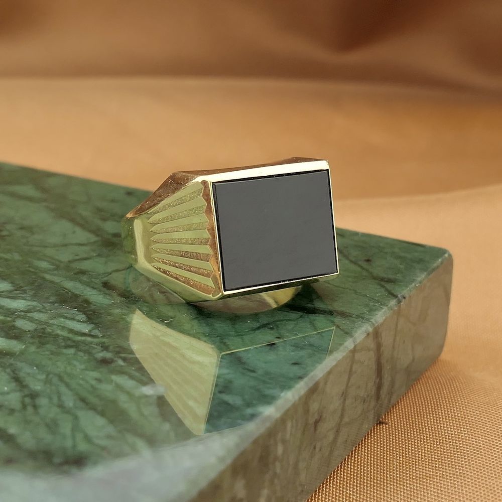 Gold signet ring set with onyx. The ring has a completely smooth finish. This beautiful men's jewelry is crafted from 14-karat yellow gold (585/1000).
