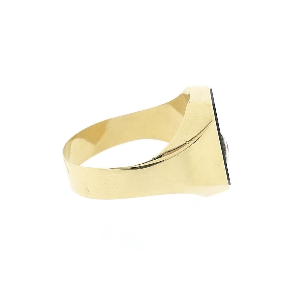 Gold men's signet ring with onyx and diamond | 0.02 ct.