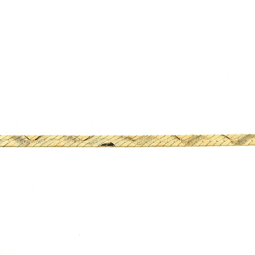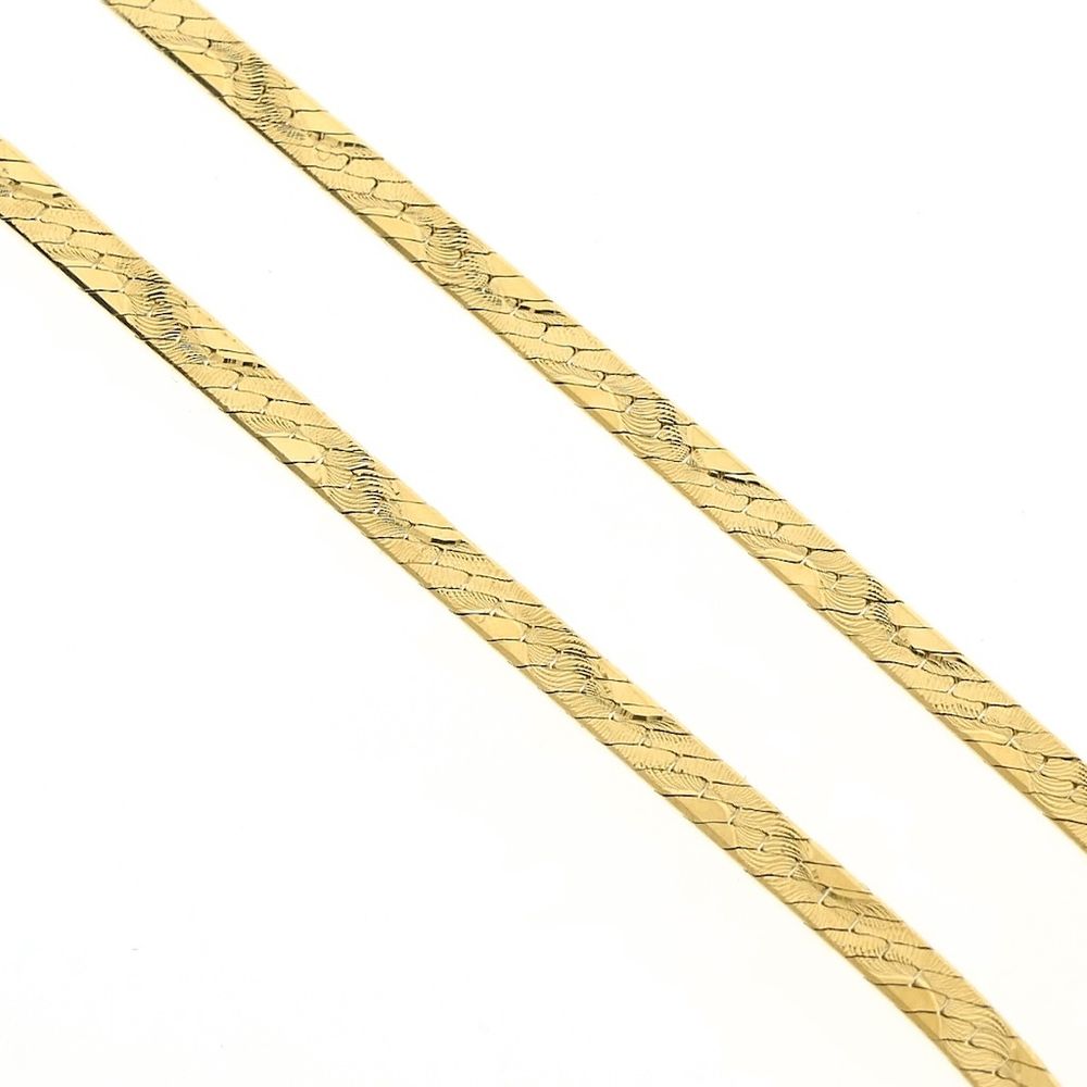 Gold fantasy link necklace from Midas. The links are smooth and closely spaced, detailed with a unique print along the entire length. A modern piece of jewelry suitable for both men and women. The necklace is crafted from 14-karat yellow gold (585/1000).