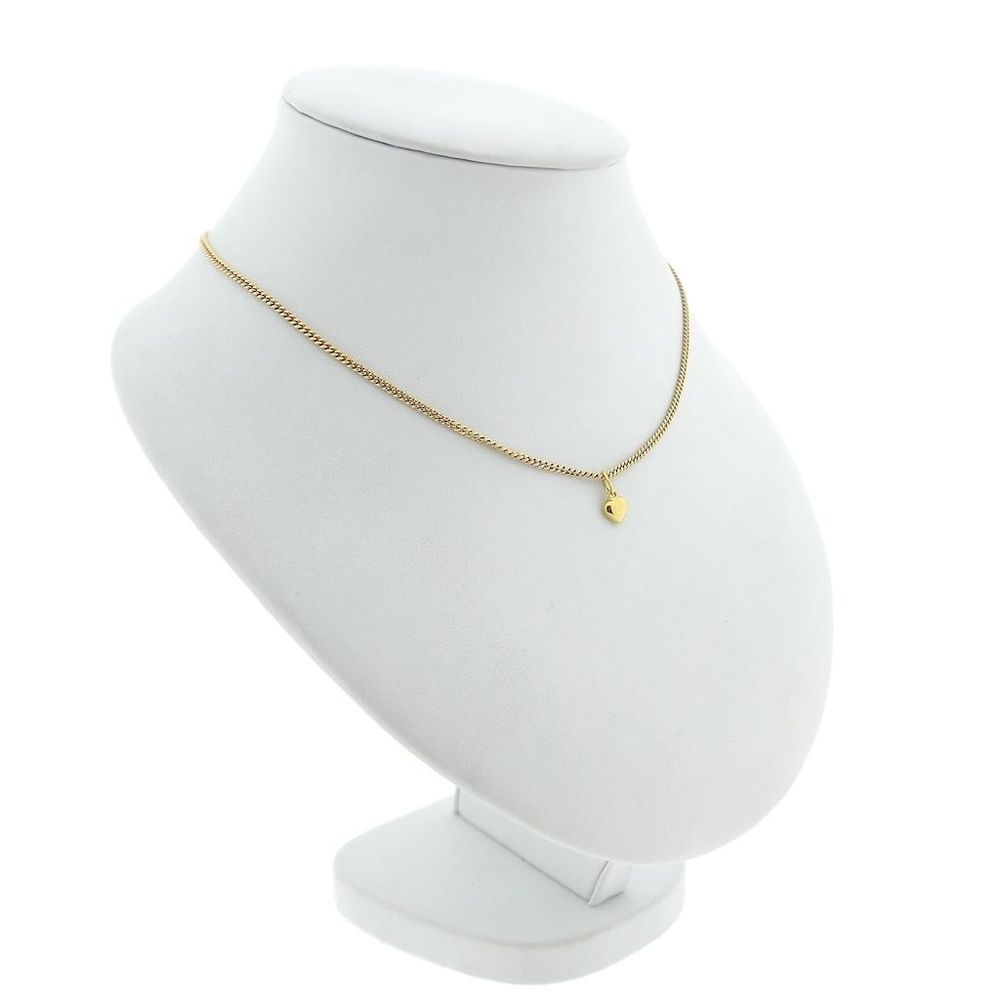 A minimalist gold pendant in the shape of a heart. The design is rounded and has a glossy finish. This charming pendant is crafted from 14-karat yellow gold (585/1000).