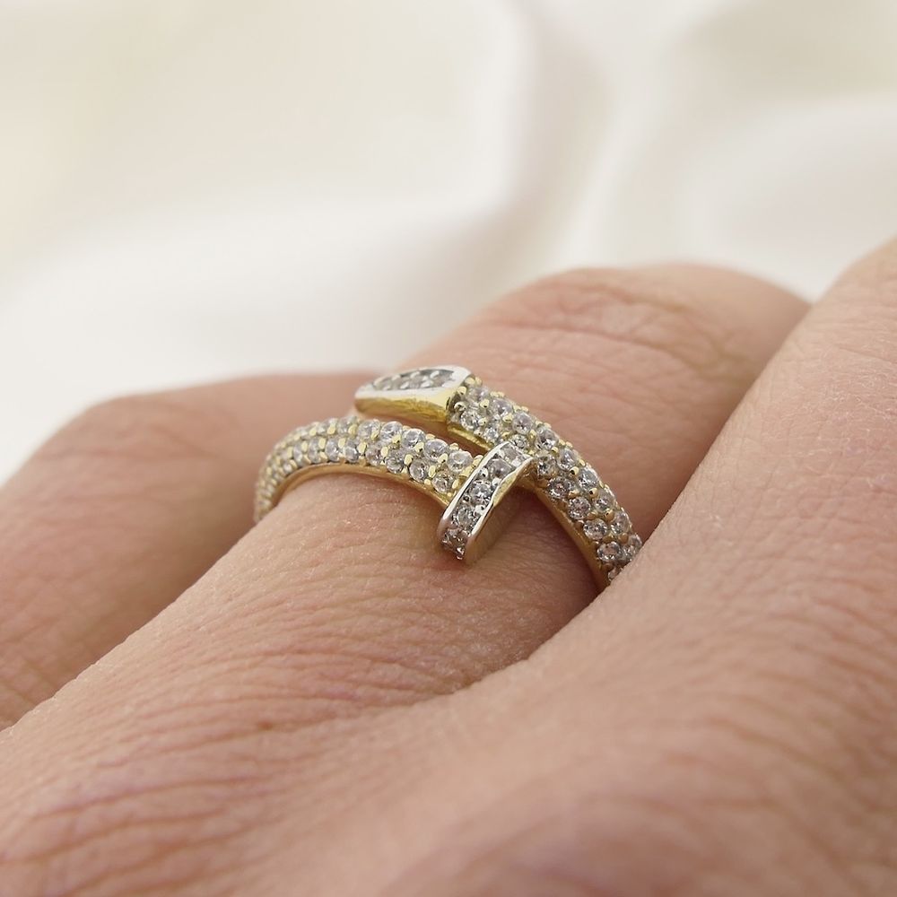 Gold nail ring with zirconia stones
