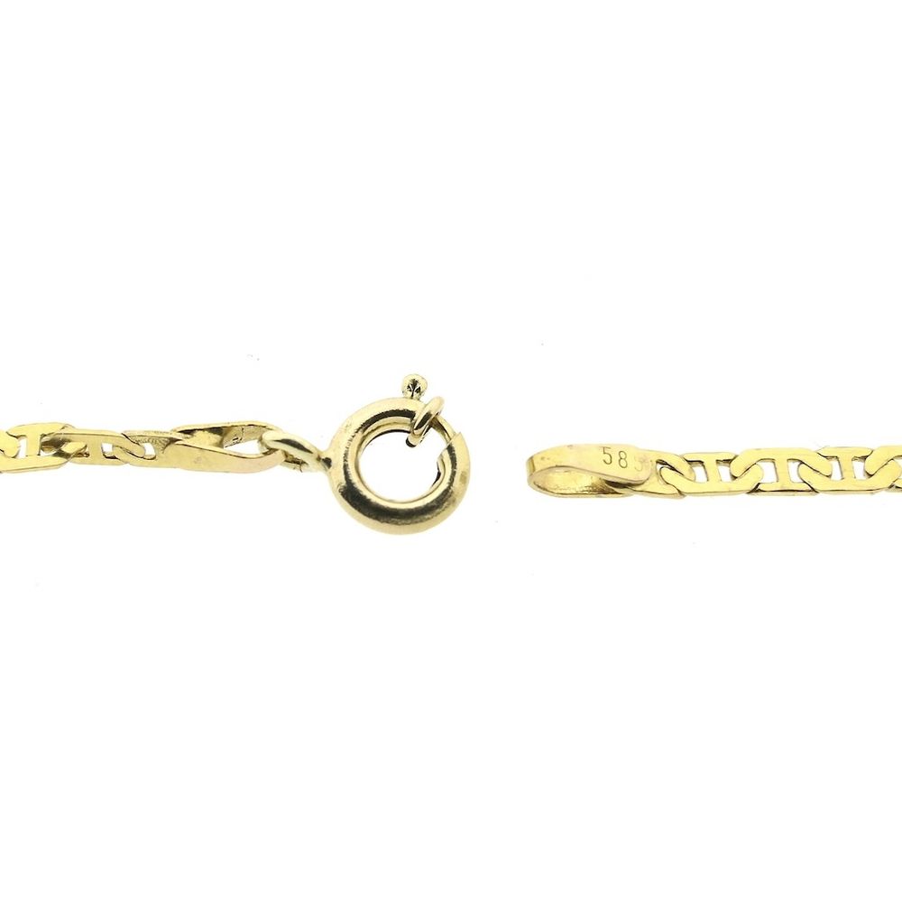 Gold navy link necklace. The links have a smooth finish and are 2.2 mm wide. The necklace closes with a spring ring and is crafted from 14-karat yellow gold (585/1000). Chain length: 49 cm