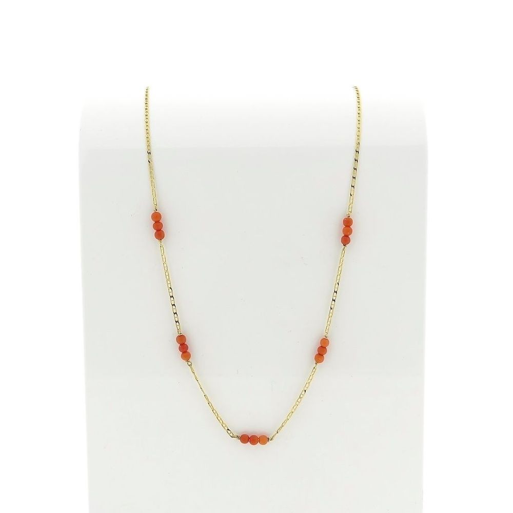 Gold necklace detailed with blood coral. A beautiful and subtle women's jewelry. The necklace is crafted from 14-karat yellow gold (585/1000).