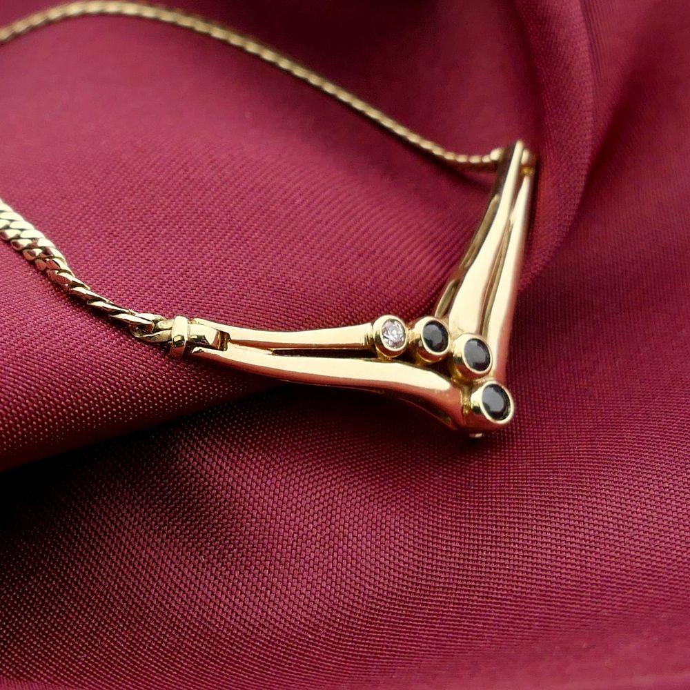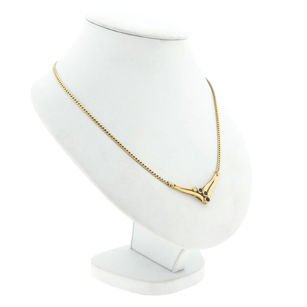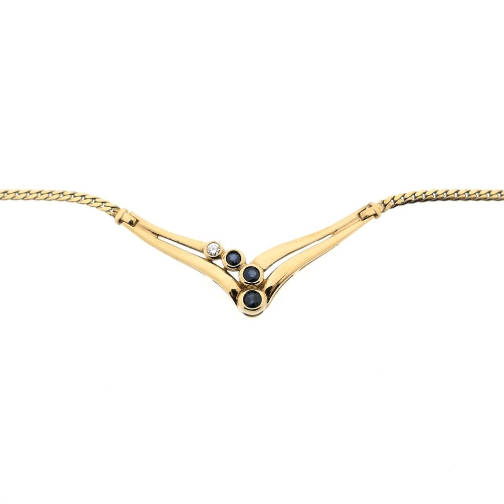 Gold necklace with fixed pendant, sapphire and diamond; 0.02 ct.