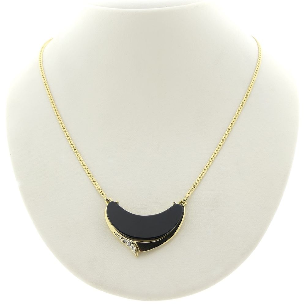 Gold necklace with onyx and diamond; 0.04 ct. | 42 cm