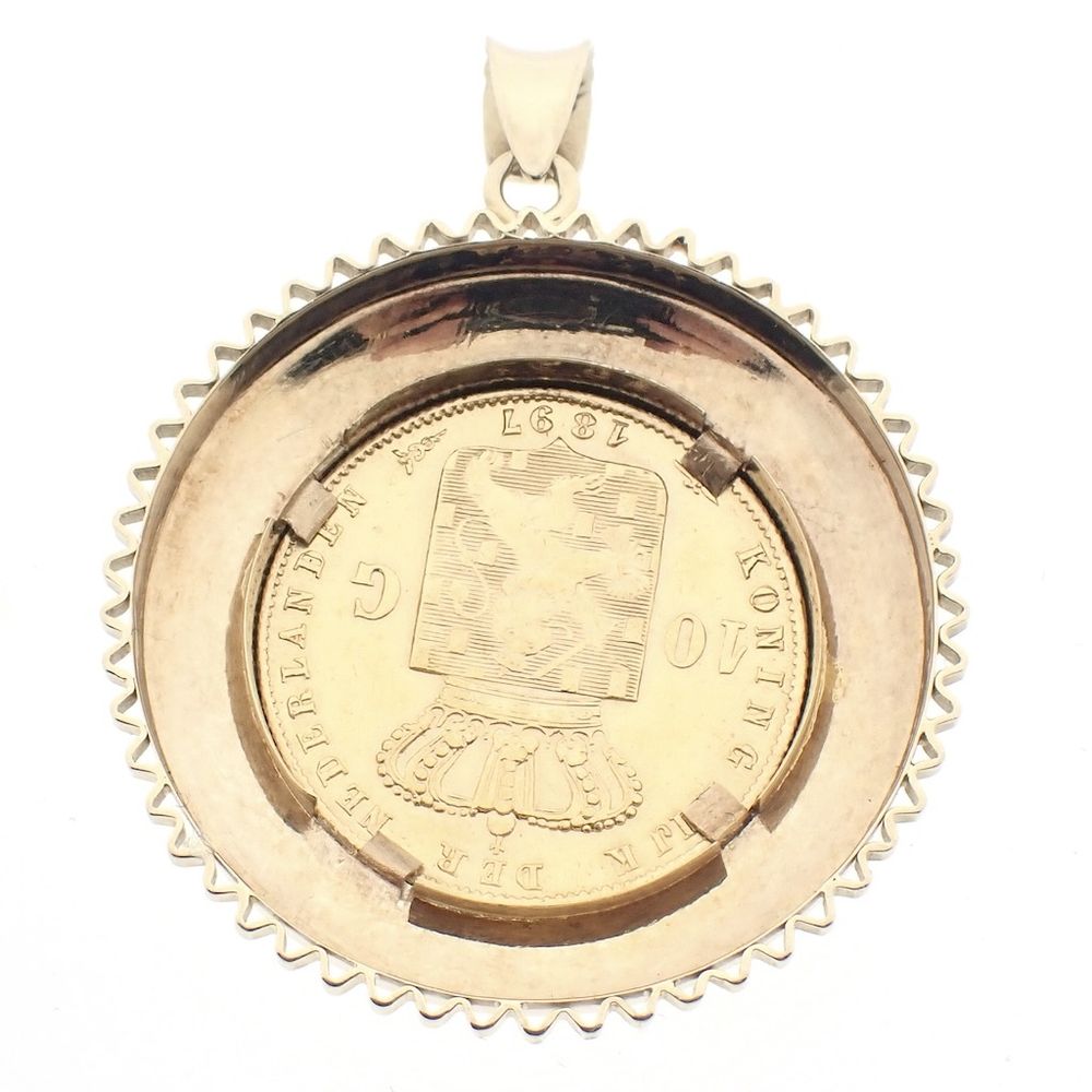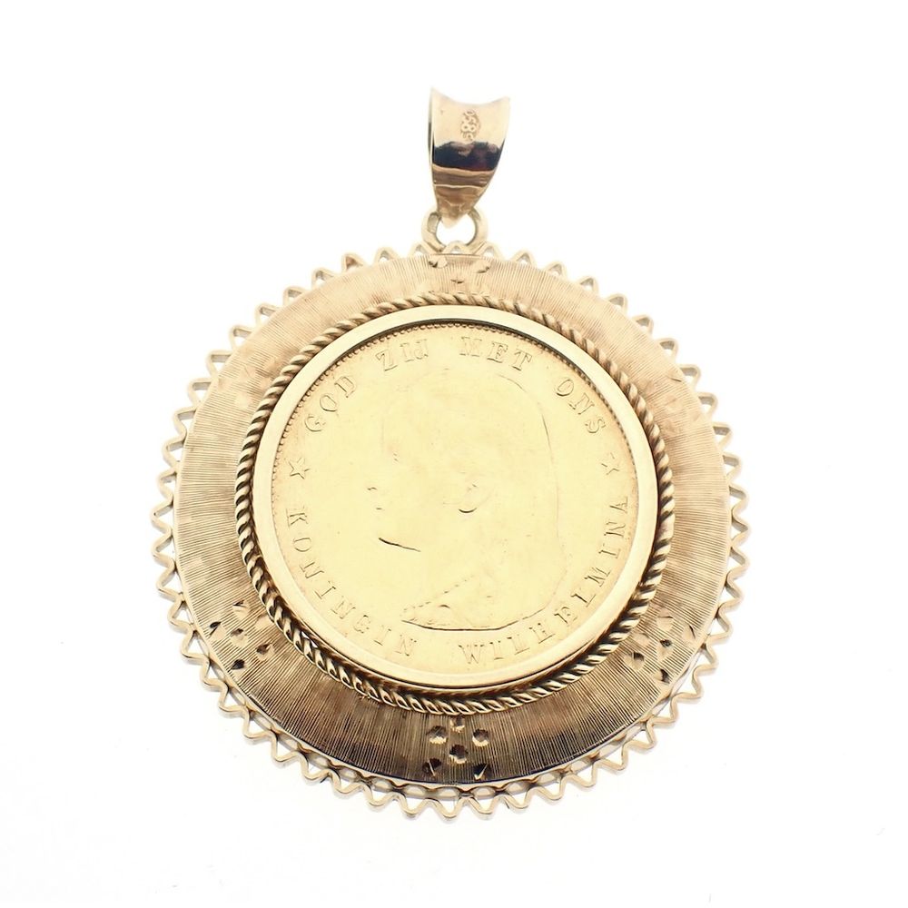 Gold pendant of 10 guilder coin Queen Wilhelmina 1897