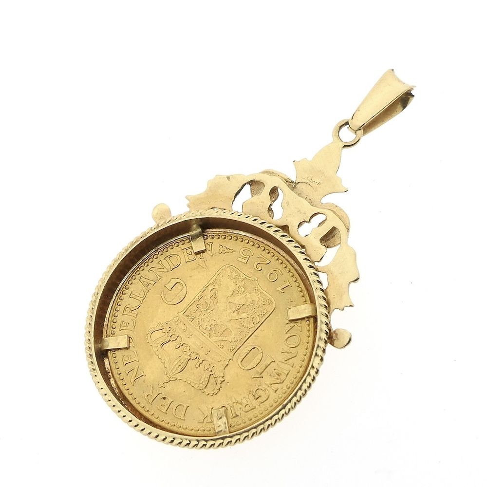 Gold pendant of 10 guilder coin Queen Wilhelmina 1925
