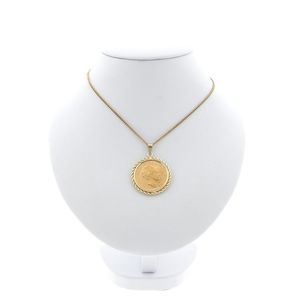 Gold pendant of 10 guilder coin Queen Wilhelmina 1932