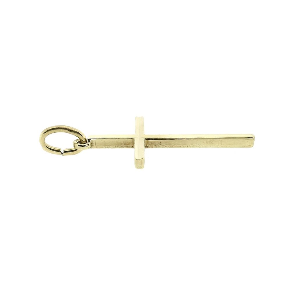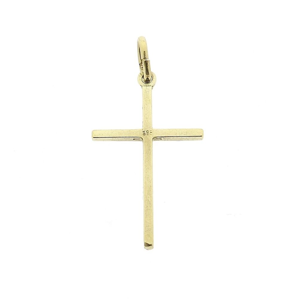 Gold cross pendant. The pendant has engravings on the front and a lightly matte finish on the back. A beautiful pendant for a thin chain. A beautiful and subtle piece of jewelry crafted from 14-karat yellow gold (585/1000).