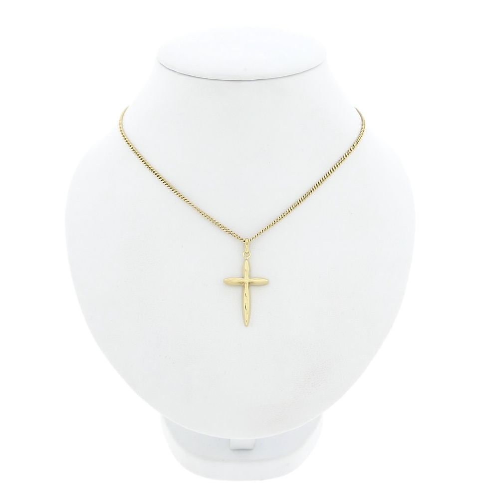 Gold cross pendant for a thin chain. The cross has a smooth finish. A beautiful and subtle piece of jewelry crafted from 14-karat yellow gold (585/1000).