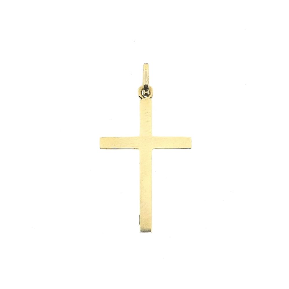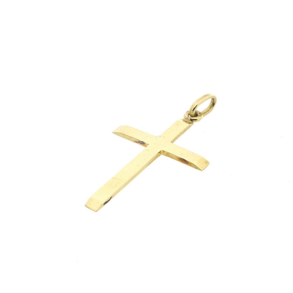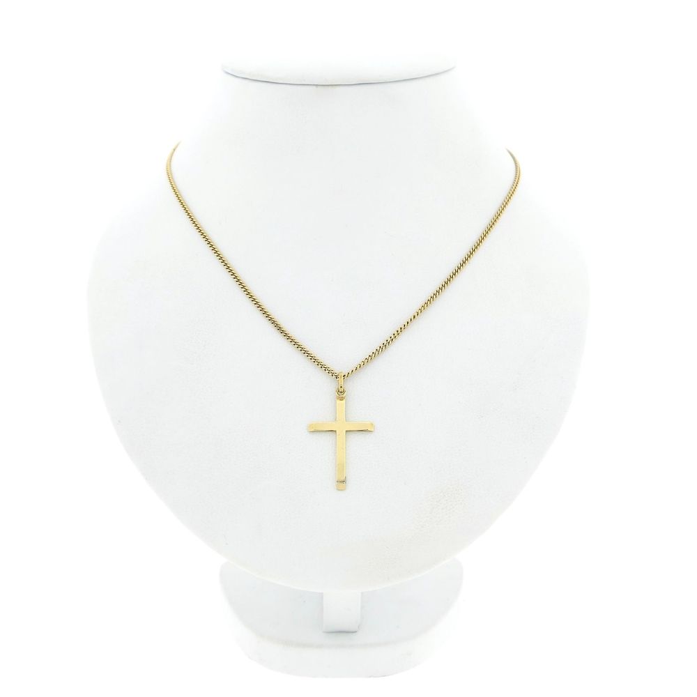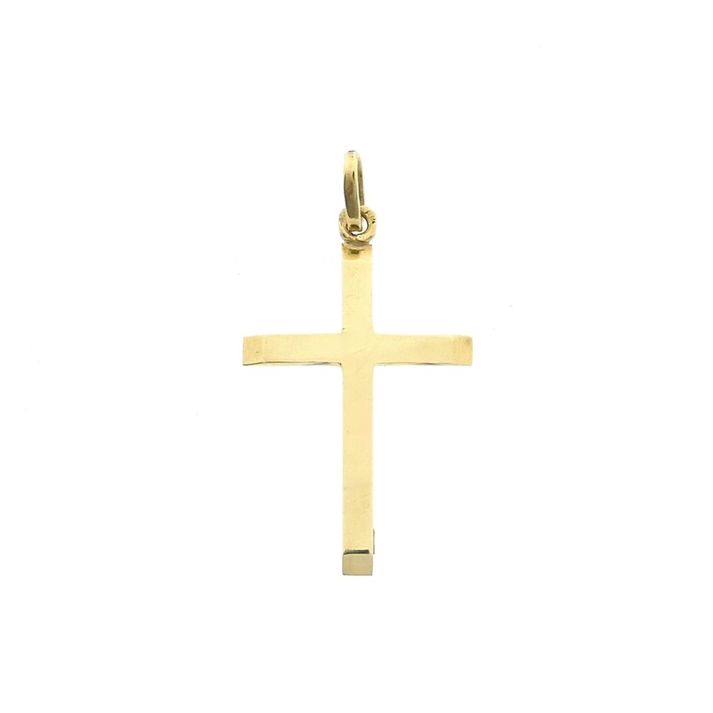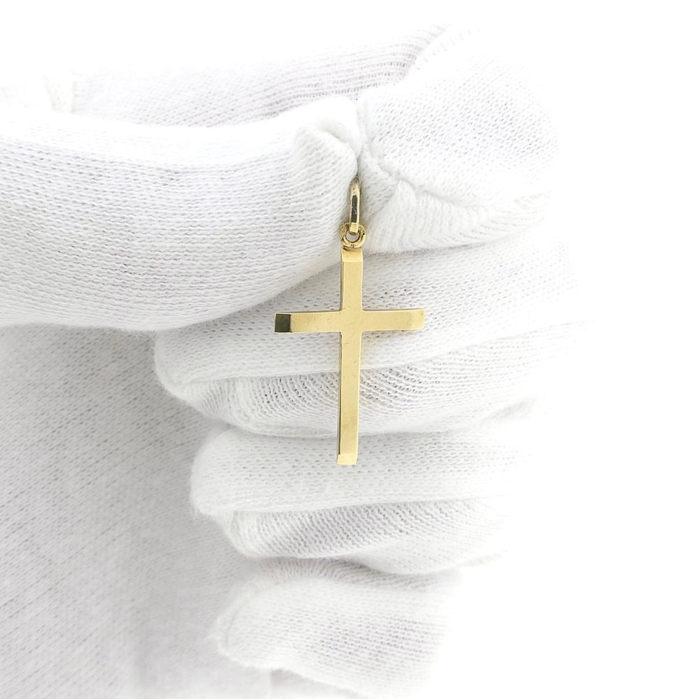 Gold cross pendant for a thin chain. The cross has a smooth finish. A beautiful and subtle piece of jewelry crafted from 14-karat yellow gold (585/1000).
