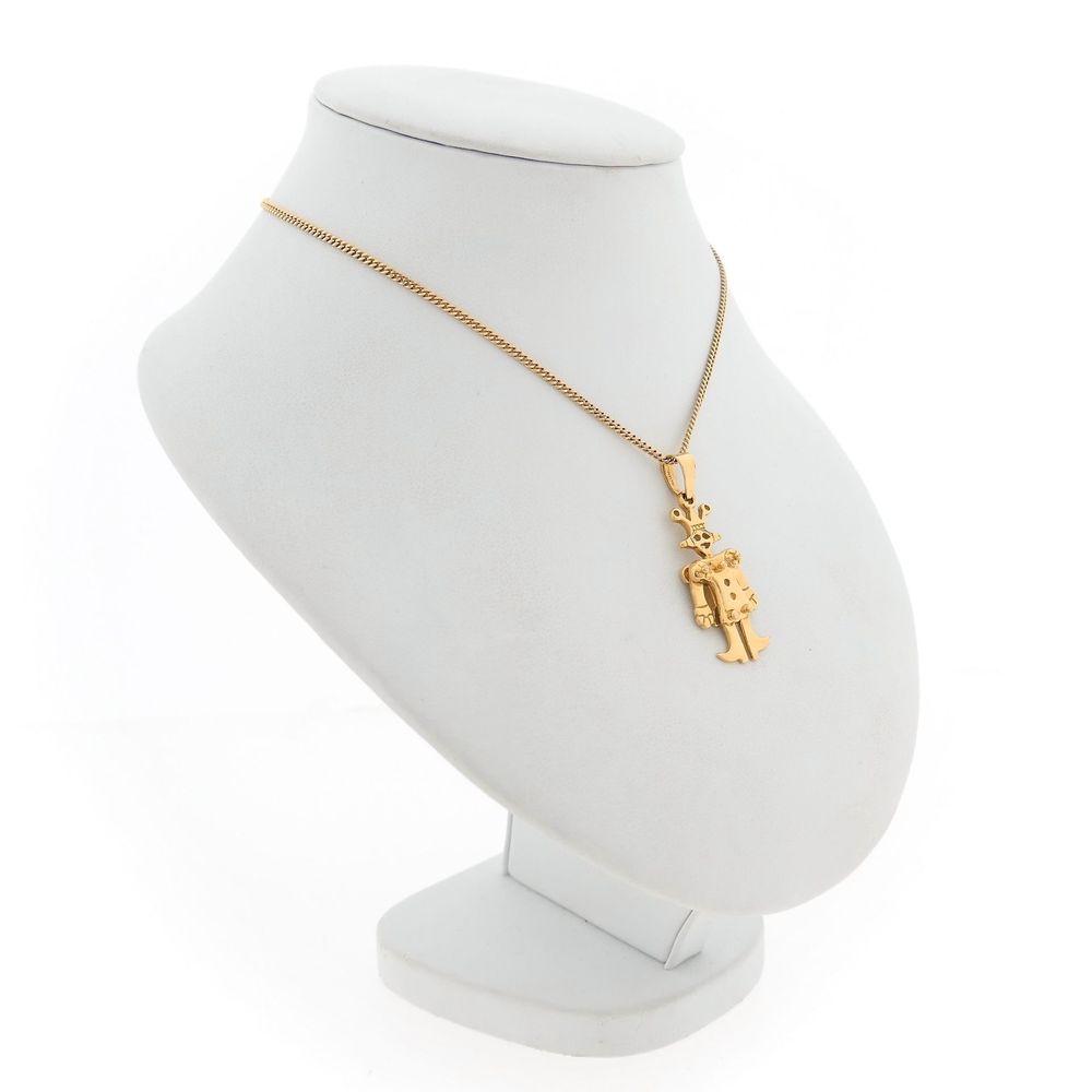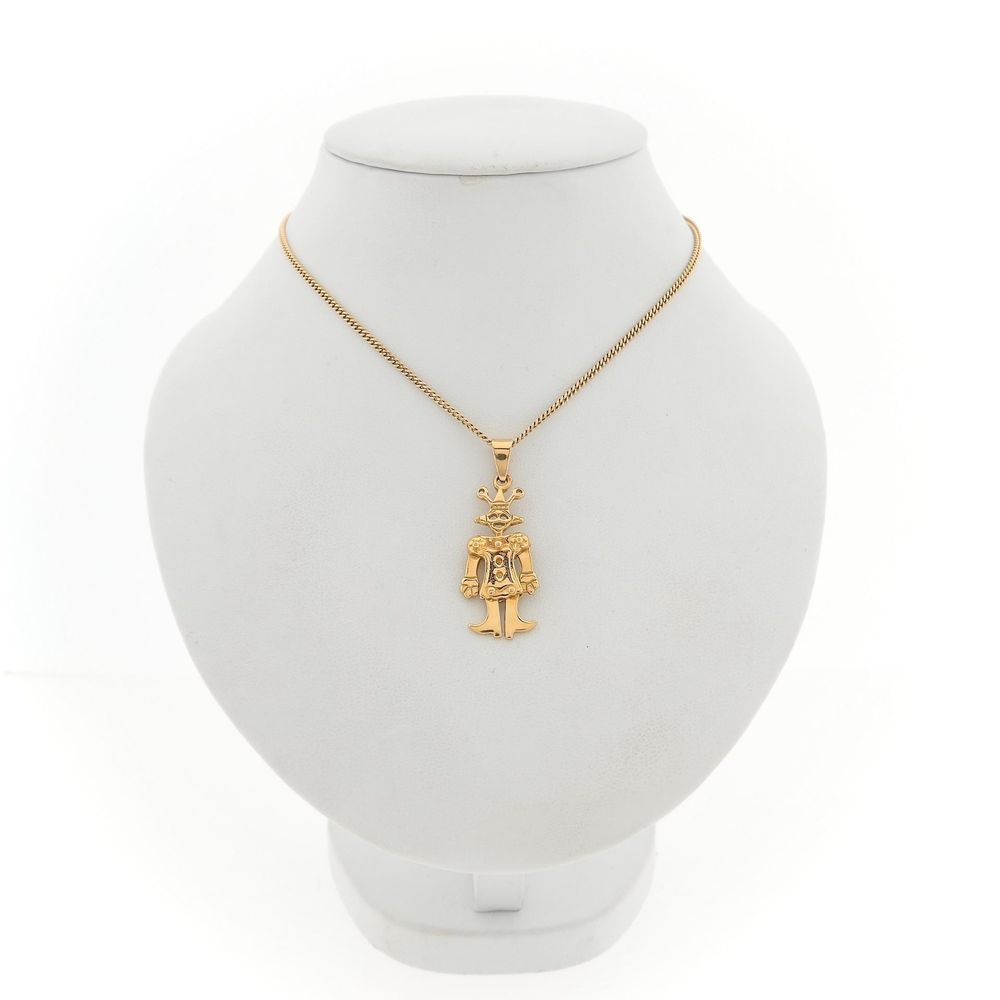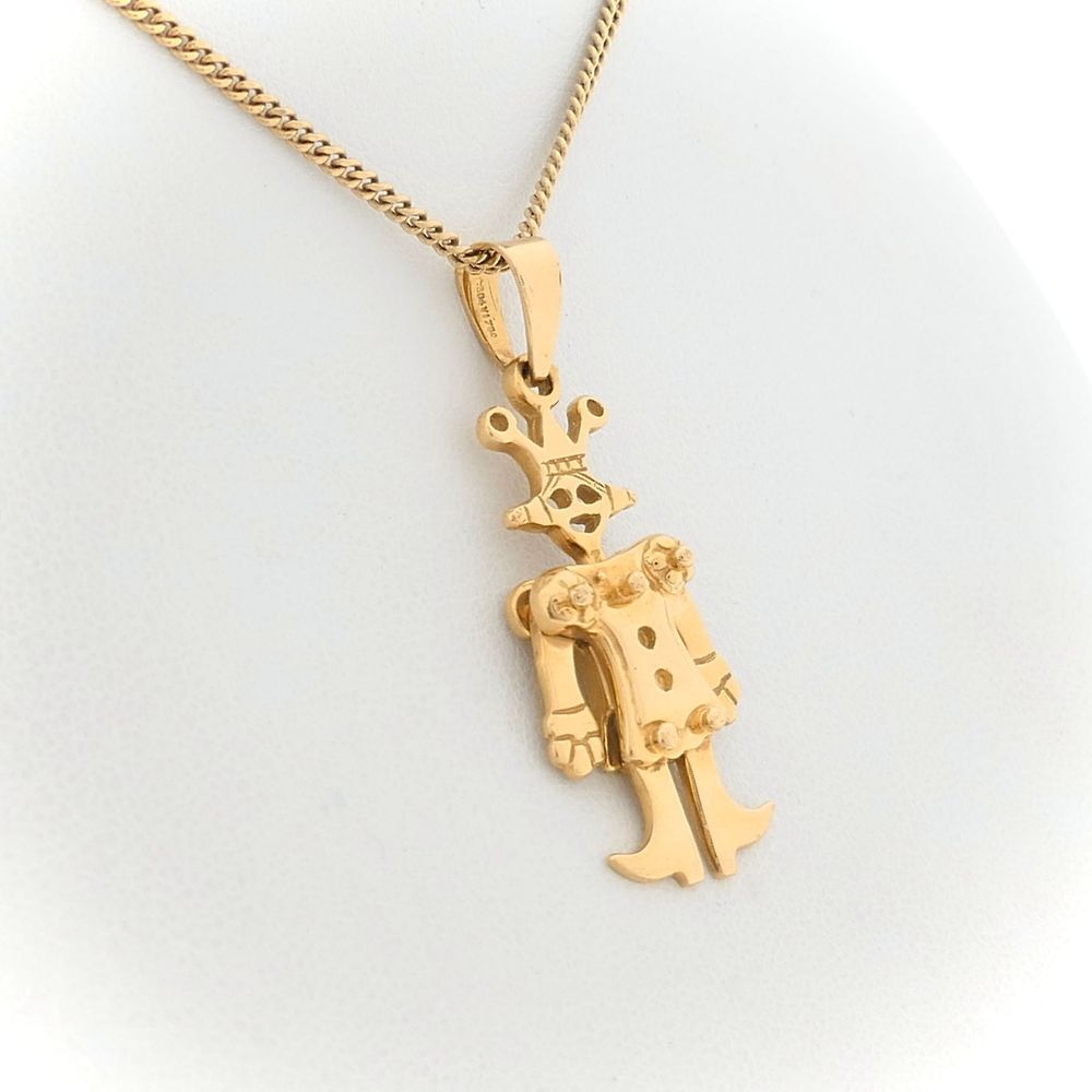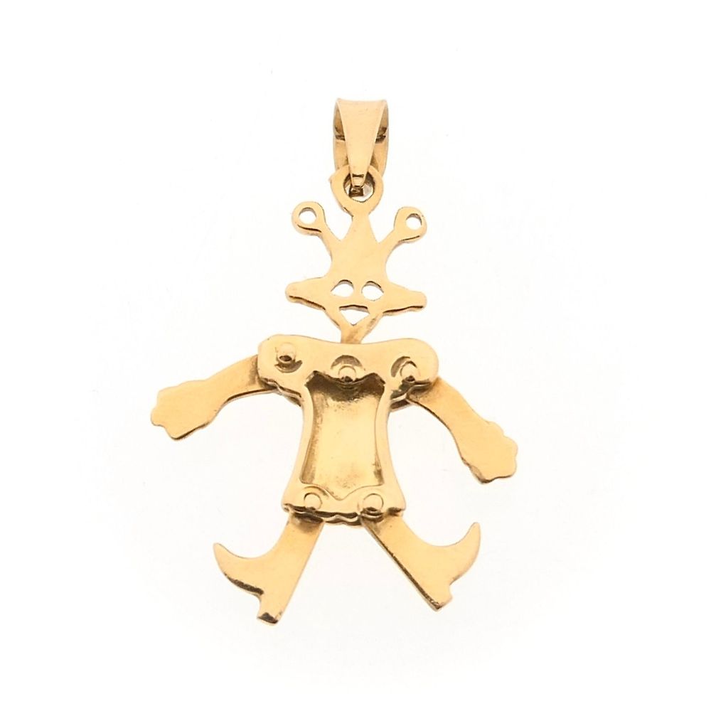 Gold pendant of a dancing court jester. The pendant is intricately crafted, and the arms, legs, and head are movable. It is made of 18-karat yellow gold (750/1000).