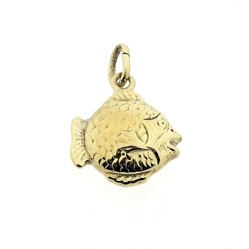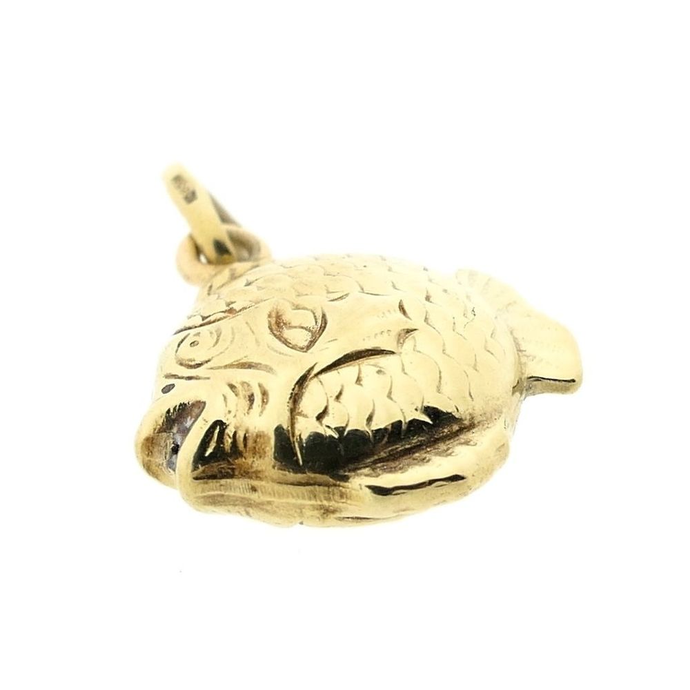 Gold fish pendant. The fish is hollow and therefore doesn't weigh you down. A charming and subtle pendant for all ages, crafted from 14-karat yellow gold (585/1000).