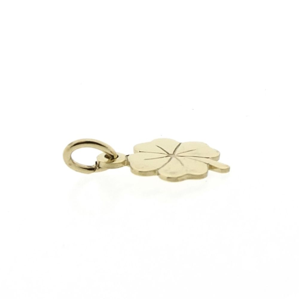 Gold four-leaf clover pendant. Receiving a four-leaf clover has been considered a good luck charm since the Middle Ages. Legend has it that each leaf represents something: hope, faith, love, and happiness. The pendant is made of 14-karat yellow gold (585/1000).