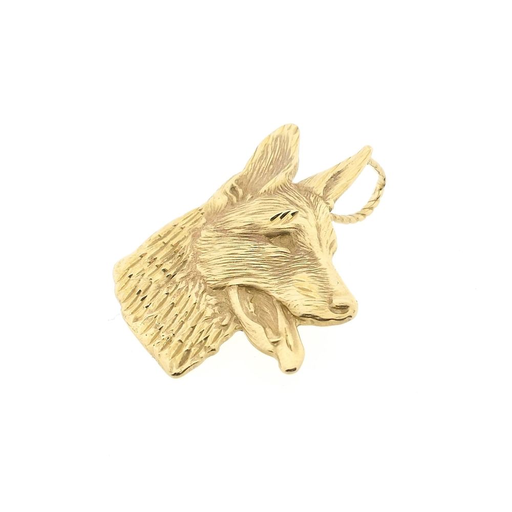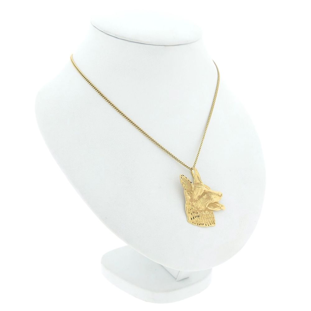 Gold pendant of a German Shepherd's head. The dog's head is beautifully detailed. A beautiful pendant for any dog lover. The pendant is crafted from 14-karat yellow gold (585/1000).