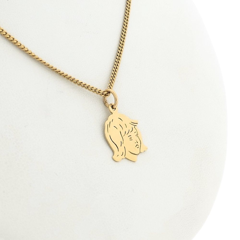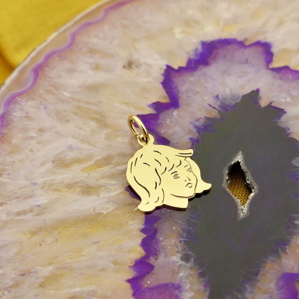 Gold pendant of a girl's child's head. The pendant is made of 14-karat yellow gold (585/1000).