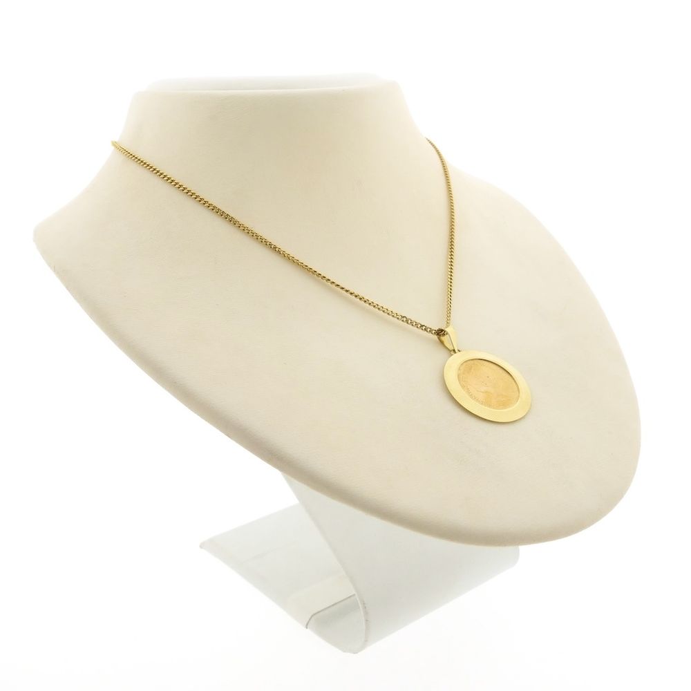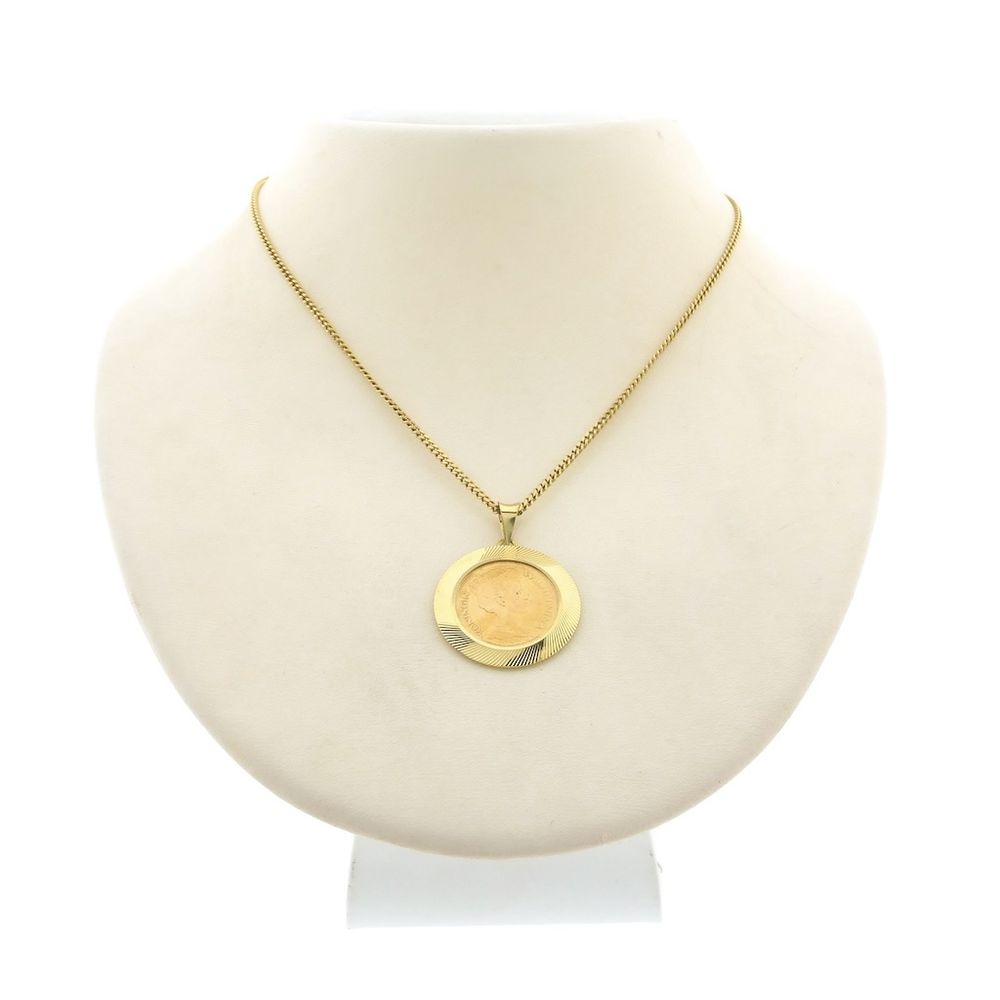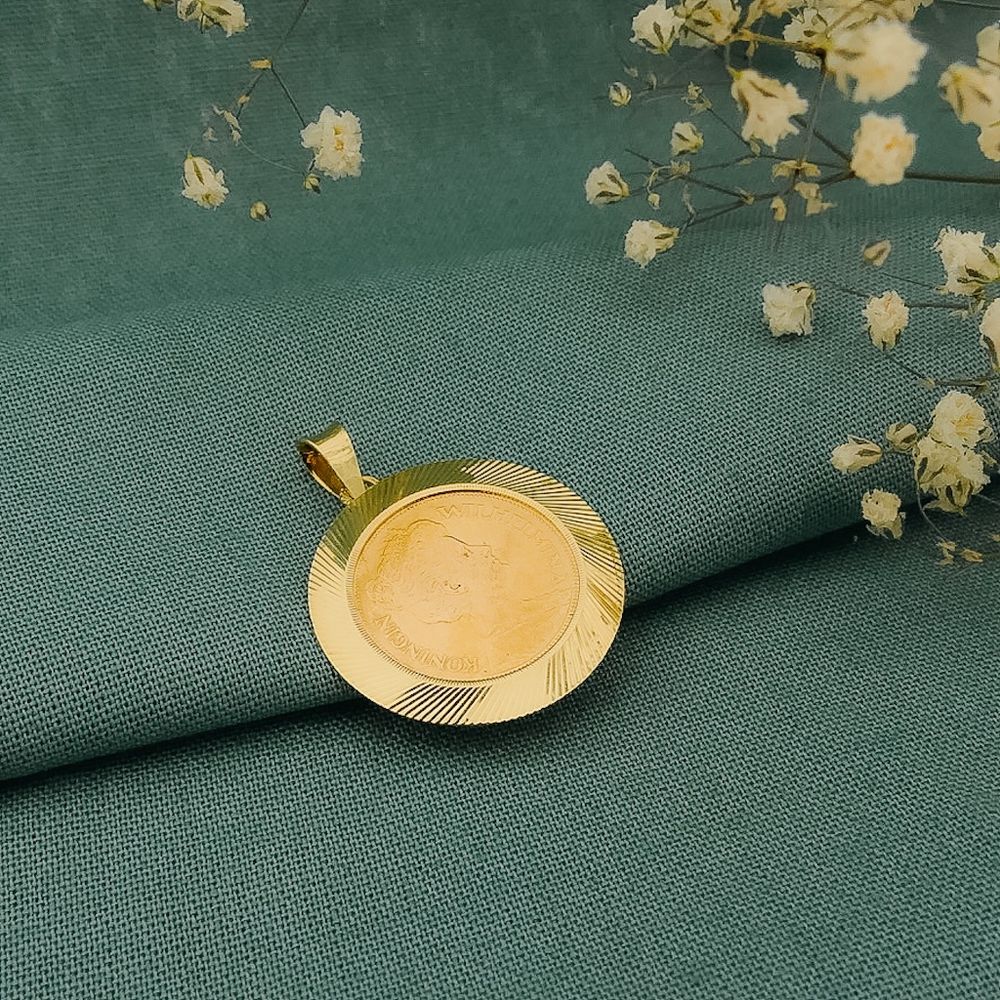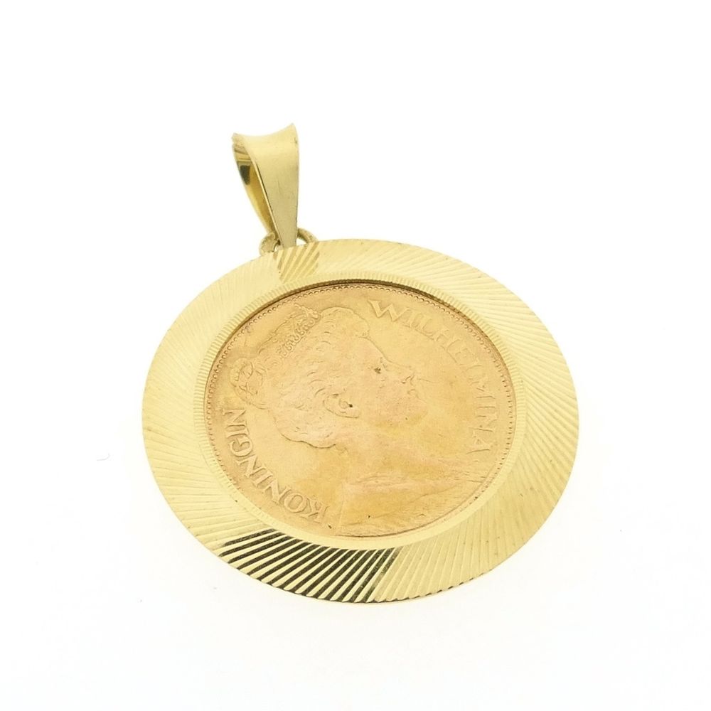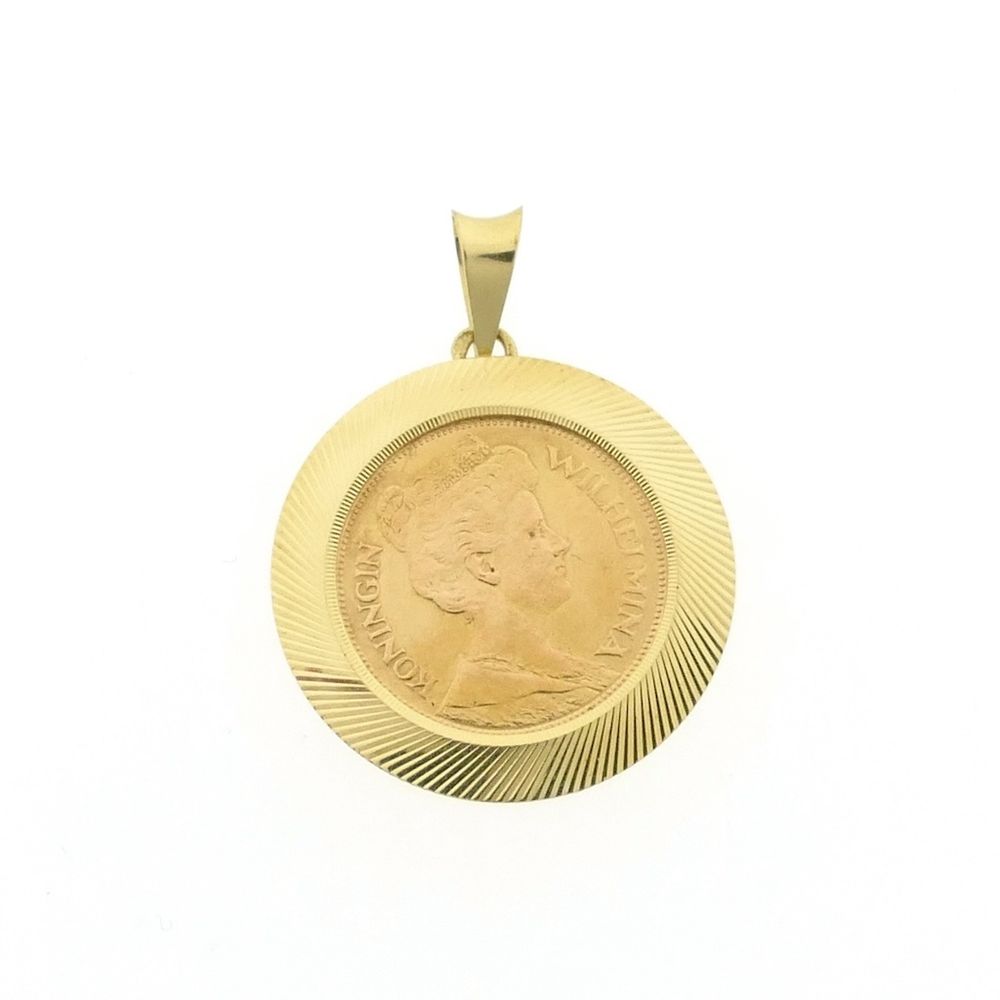 Gold pendant of a gold fiver; Queen Wilhelmina 1912