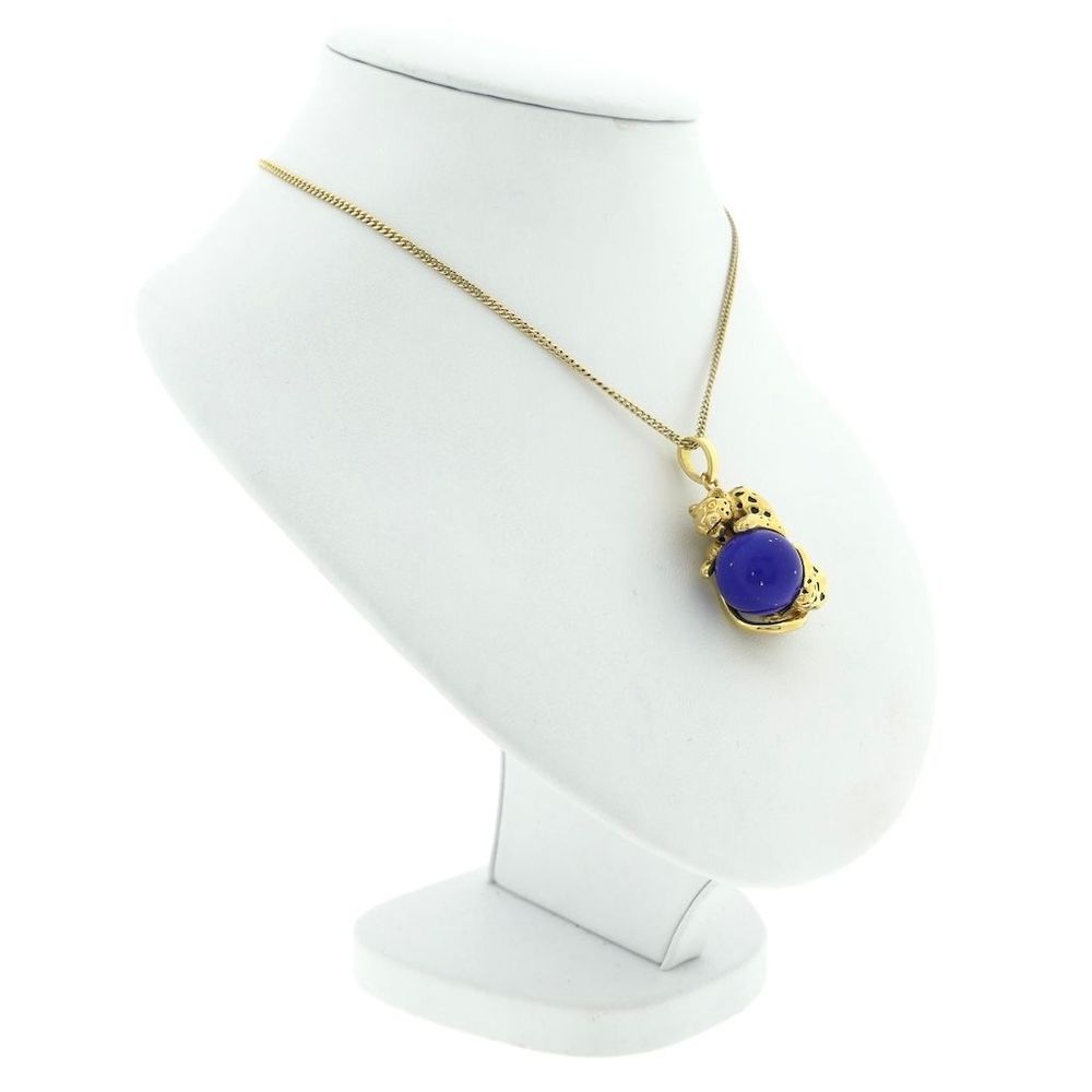 Gold panther pendant holding a lapis lazuli sphere. The pendant is crafted from 18-karat yellow gold (750/1000).