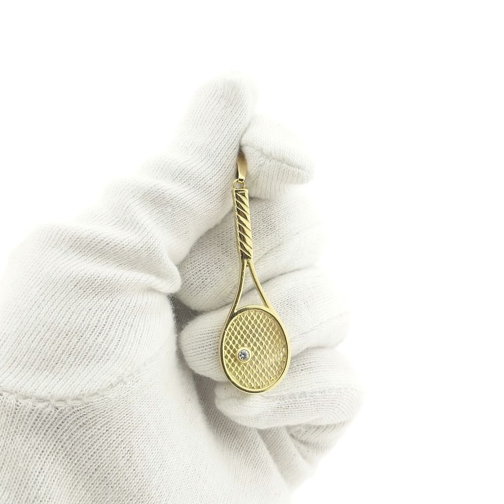 Gold pendant of a tennis racket with diamond; 0.04 ct.