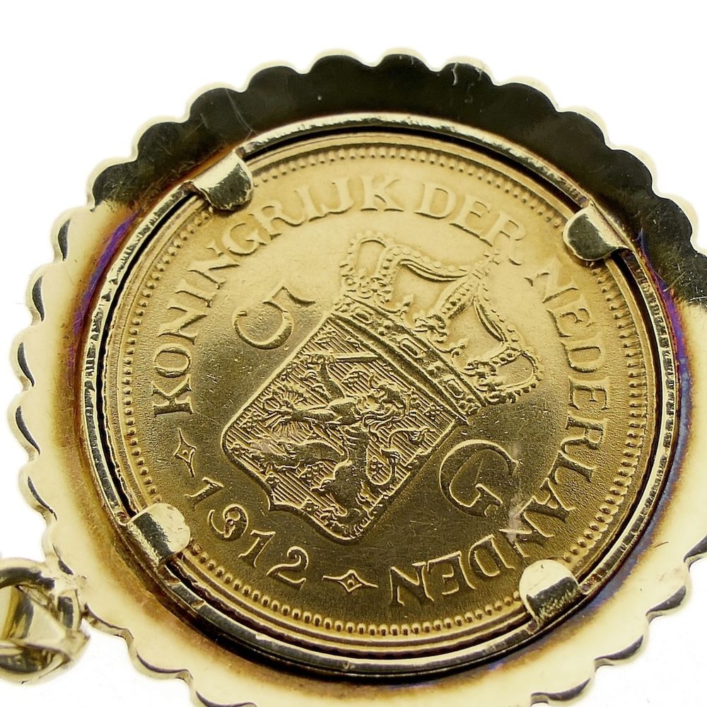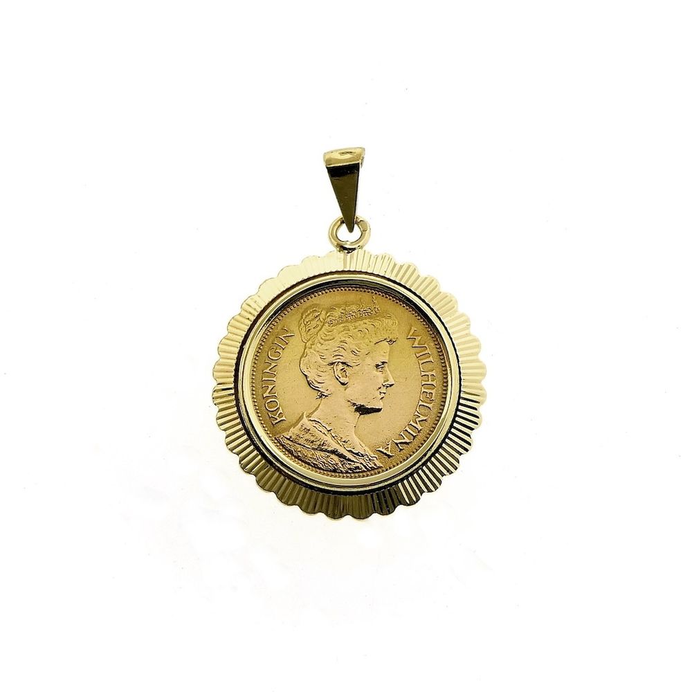 Gold pendant of gold fiver; Queen Wilhelmina 1912