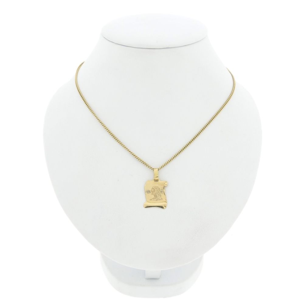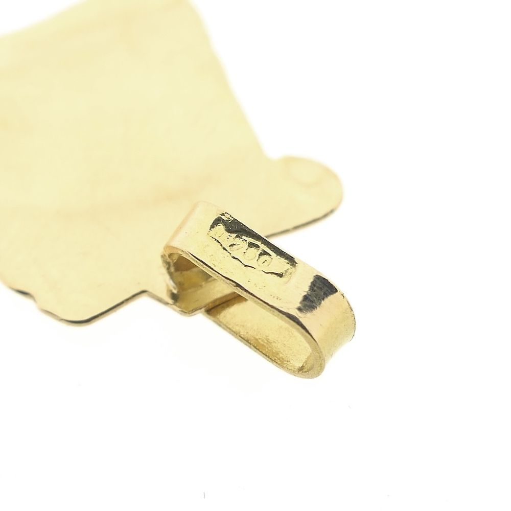 Gold pendant with the face of Jesus engraved on parchment. The pendant symbolizes "Holy Scripture" or "the Word of God." This religious pendant is made of 18-karat yellow gold (750/1000).
