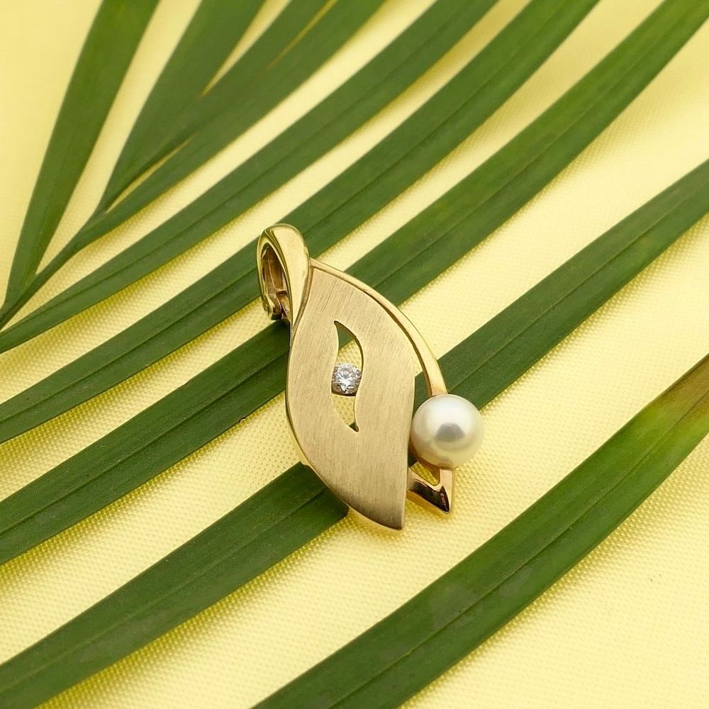 Gold pendant set with pearl and zirconia