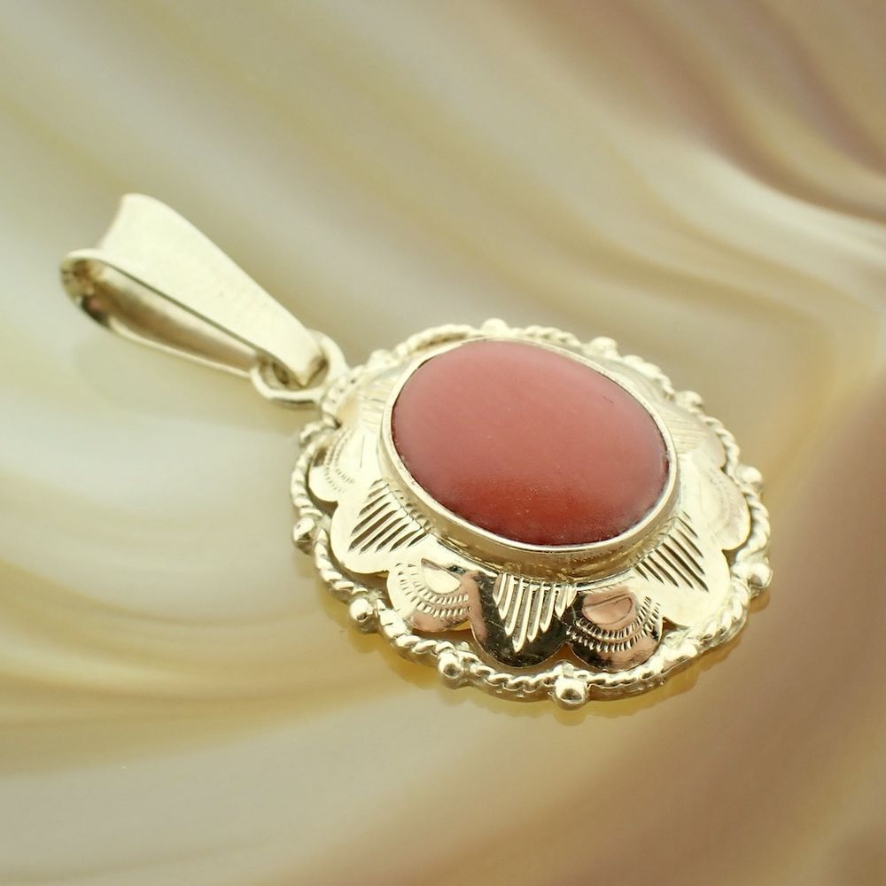 Gold pendant with blood coral | Vintage/antique