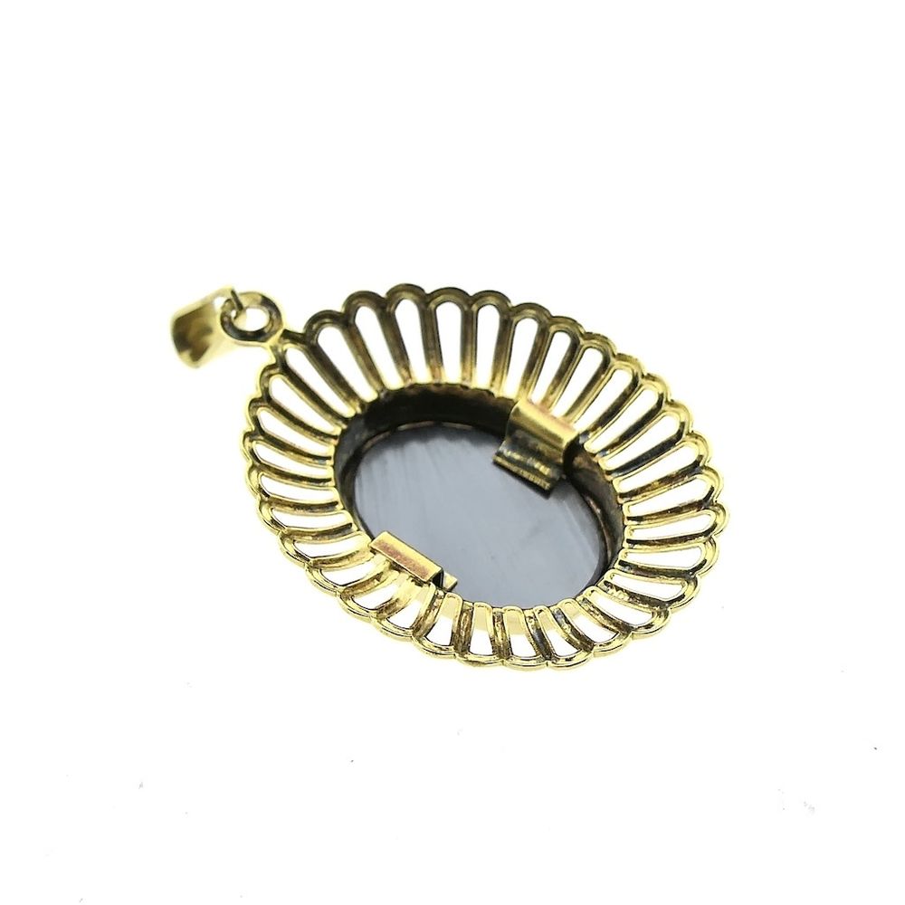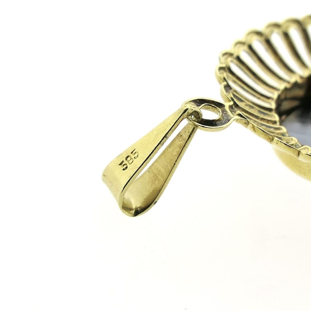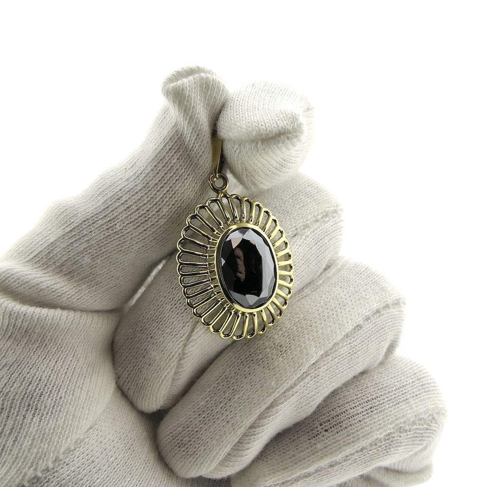 Gold pendant set with a hematite stone. The hematite has a dense metallic black color and is oval-cut. The setting gives the piece a striking, vintage look. The pendant is crafted from 14-karat yellow gold (585/1000).