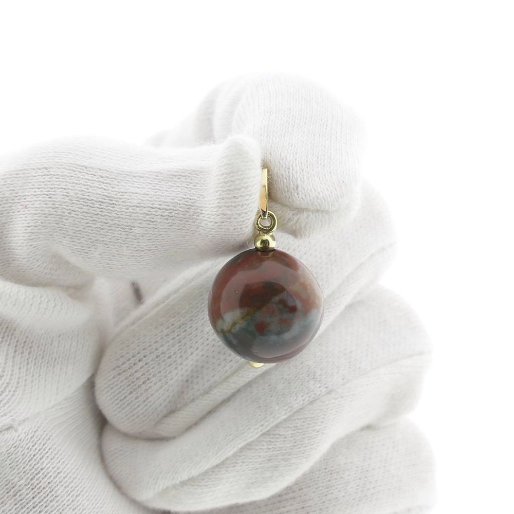 Gold pendant set with a cabochon-cut moss agate. A striking pendant crafted from 14-karat yellow gold (585/1000).