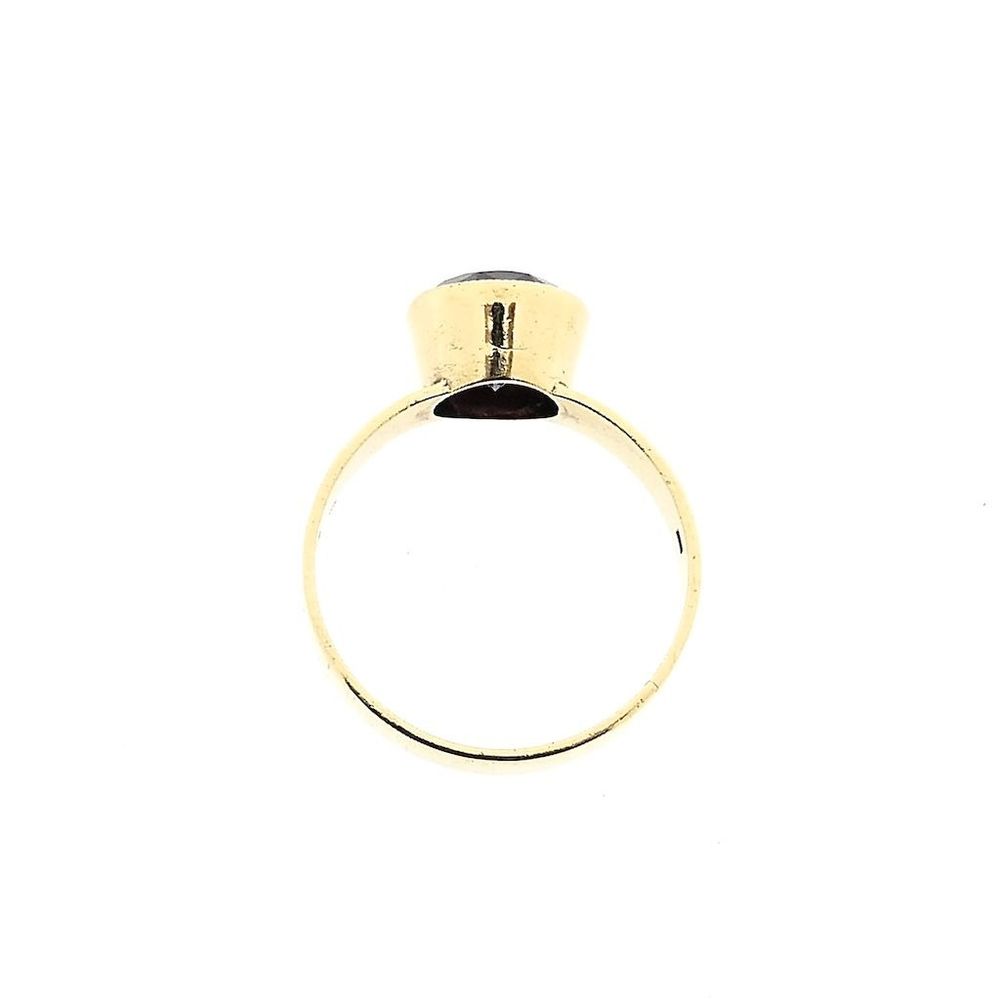 Gold ring set with a synthetic gemstone. The purple/blue stone is crystal clear and semi-transparent. This beautiful ring is made of 14 karat yellow gold (585/1000).
