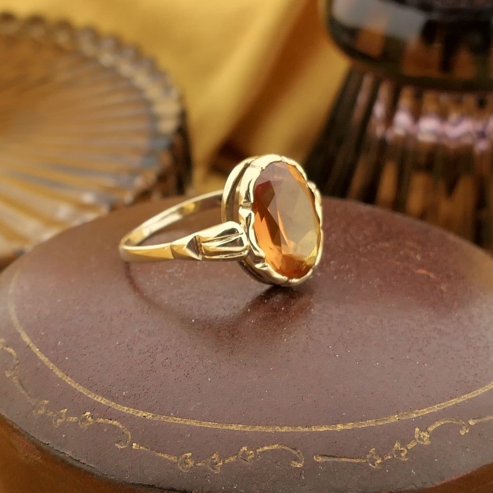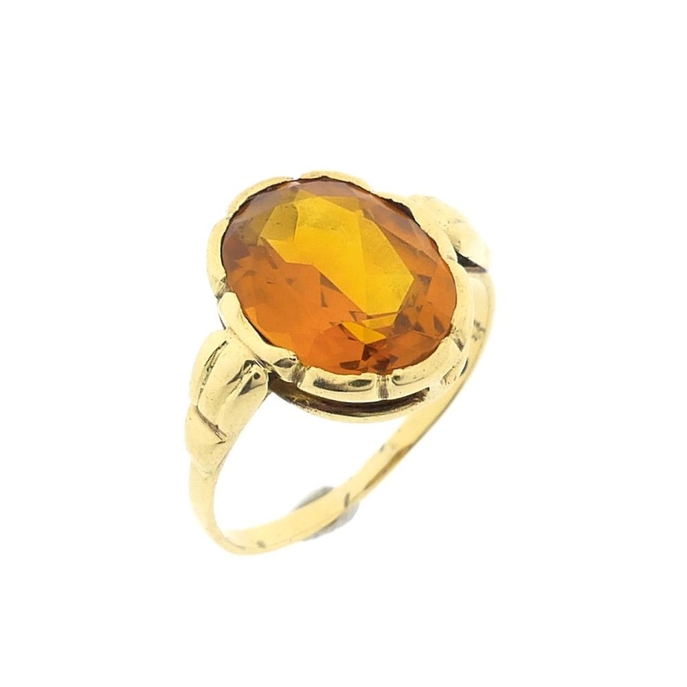 Gold ring set with a synthetic orange gemstone. The ring has a vintage look and is crafted from 14-karat gold (585/1000).