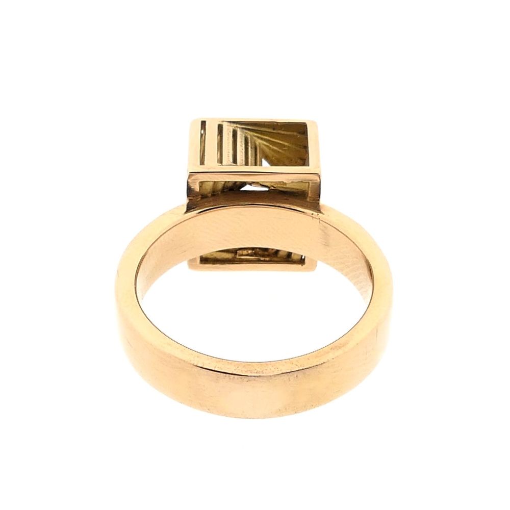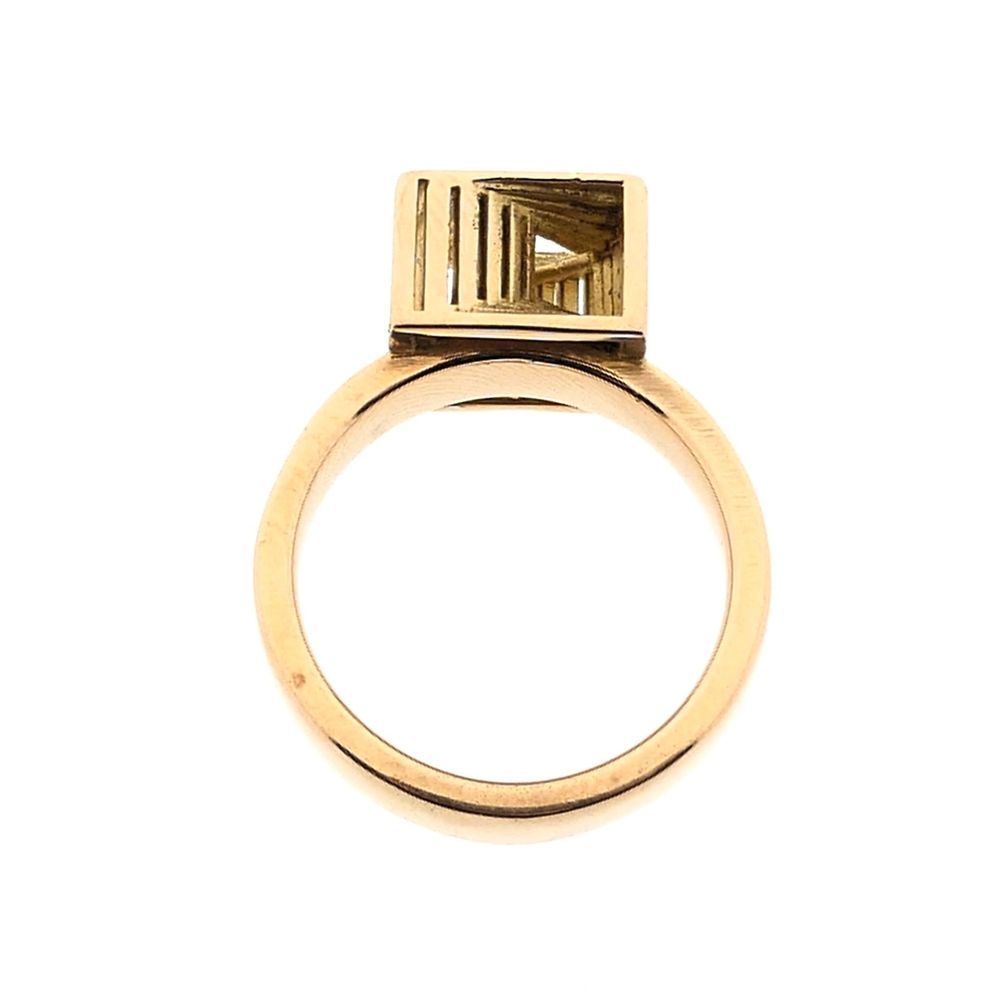Gold ring with a dynamic design. The ring features a head with a 3D staircase. Crafted from 14-karat yellow gold (585/1000), it is a gemstone.