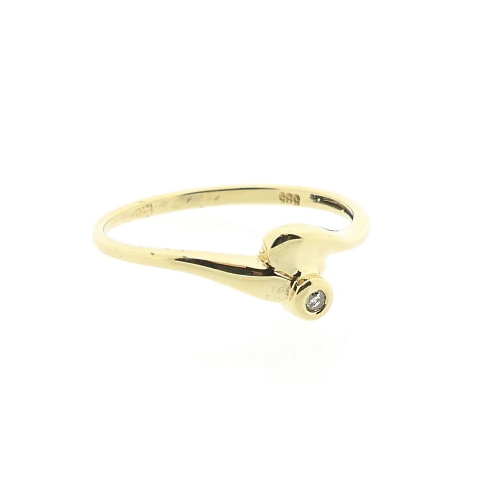 Gold ring featuring a round brilliant-cut diamond with a total weight of 0.015 ct. The diamond is set in a yellow gold donut setting. This subtle ring is made of 14 karat yellow gold (585/1000).