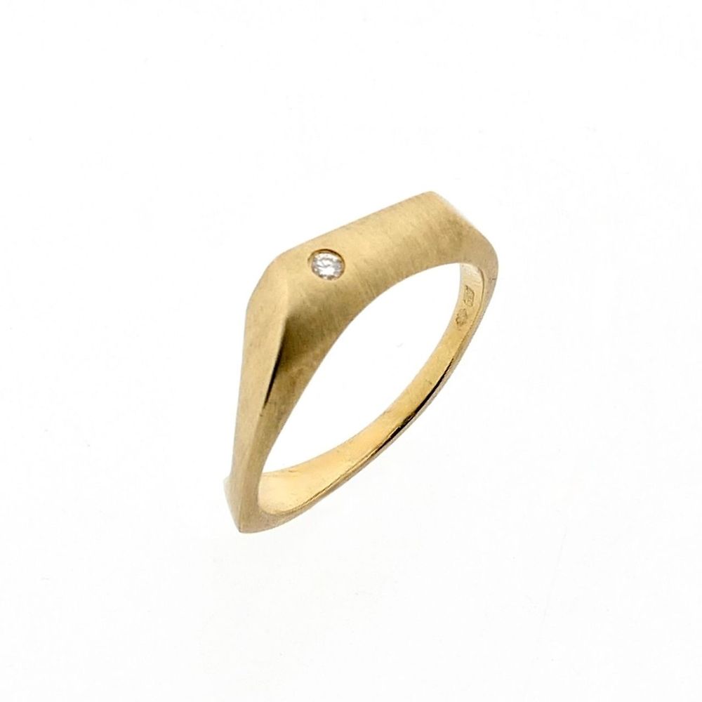 Gold ring set with a 0.02 ct. diamond. The ring has a matte finish and is made of 14 karat yellow gold (585/1000).