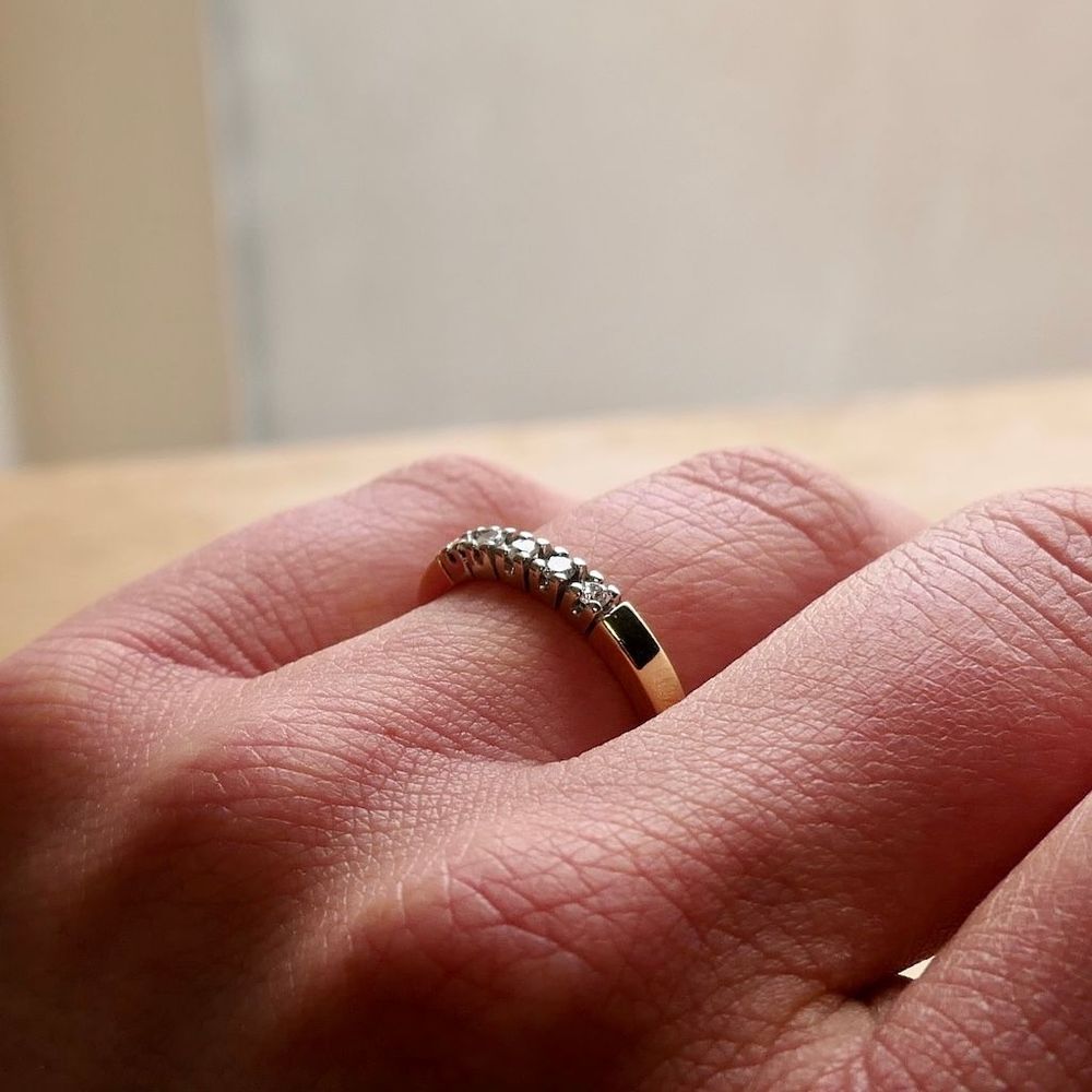 Gold ring set with diamonds. The diamonds are round brilliant cut and together they have a total weight of 0.15 ct. A modern and timeless ring made from 14 karat yellow gold (585/1000).
