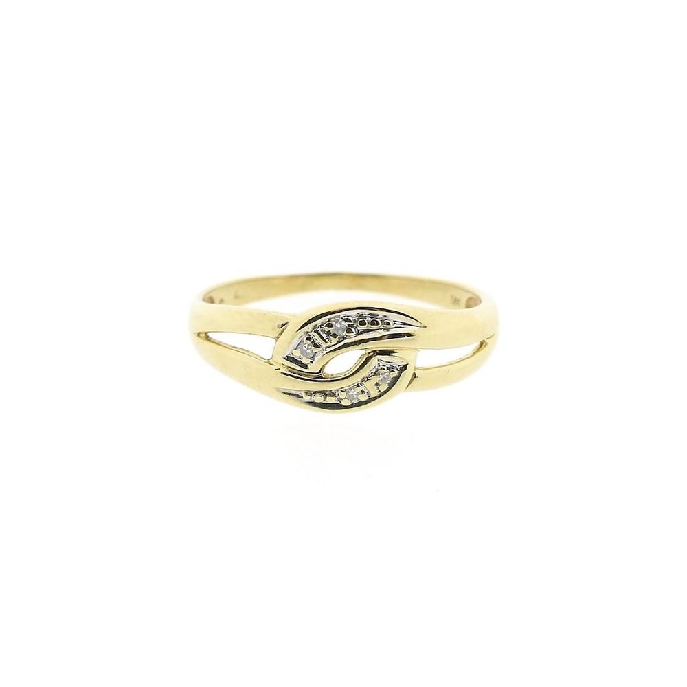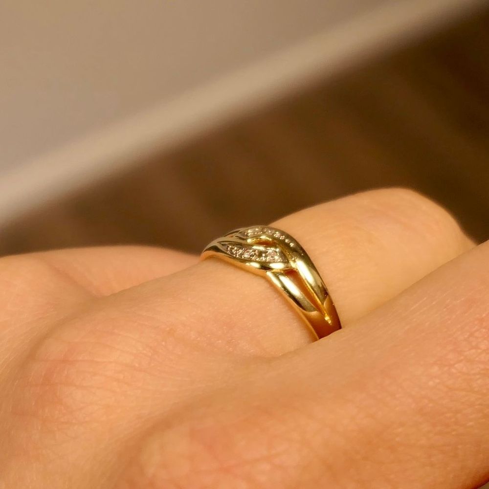 Gold ring set with four stunning round brilliant-cut natural diamonds set in white gold. An elegant piece crafted from 14-karat yellow gold (585/1000).