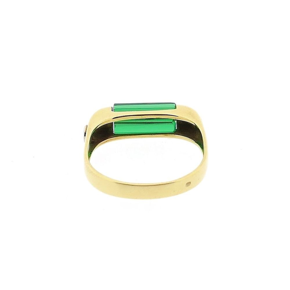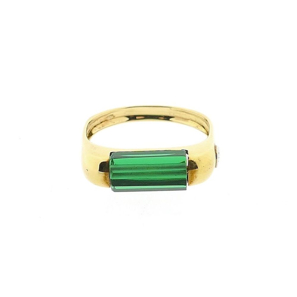 Gold ring set with tourmaline. The beautiful green stone is cut with 6 facets. The ring is made of 18 carat yellow gold (750/1000).